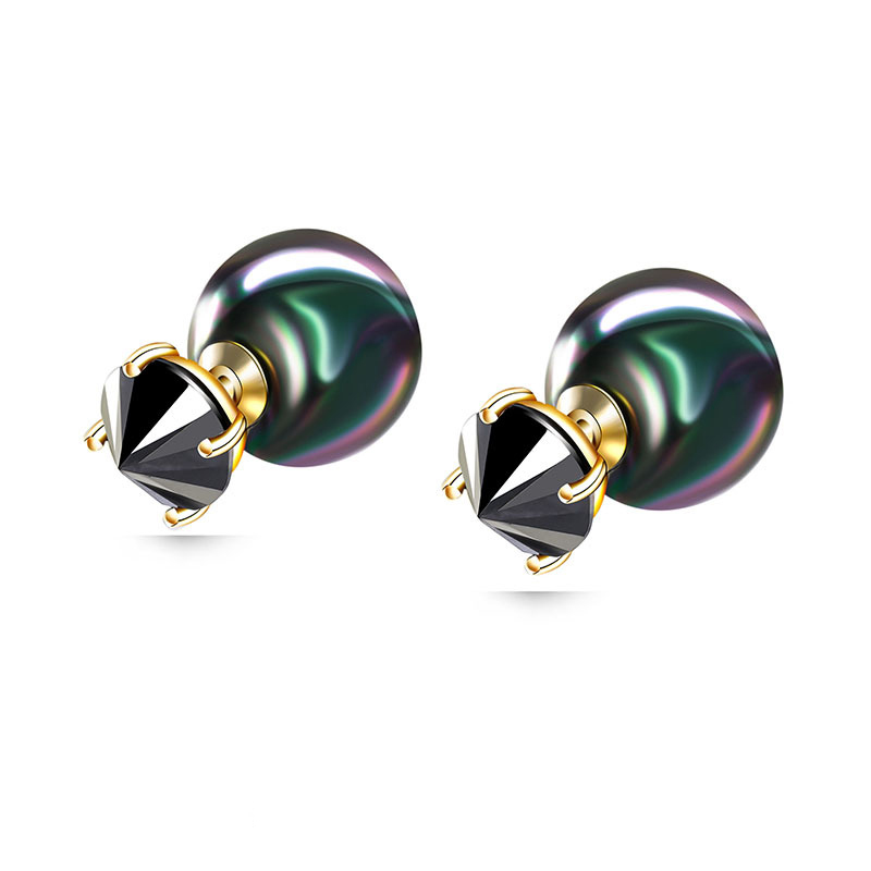 laiton boucle d oreille dormeuse, avec perle de plastique, Placage de couleur d'or, pour femme & avec zircone cubique, 11x21mm, Vendu par PC