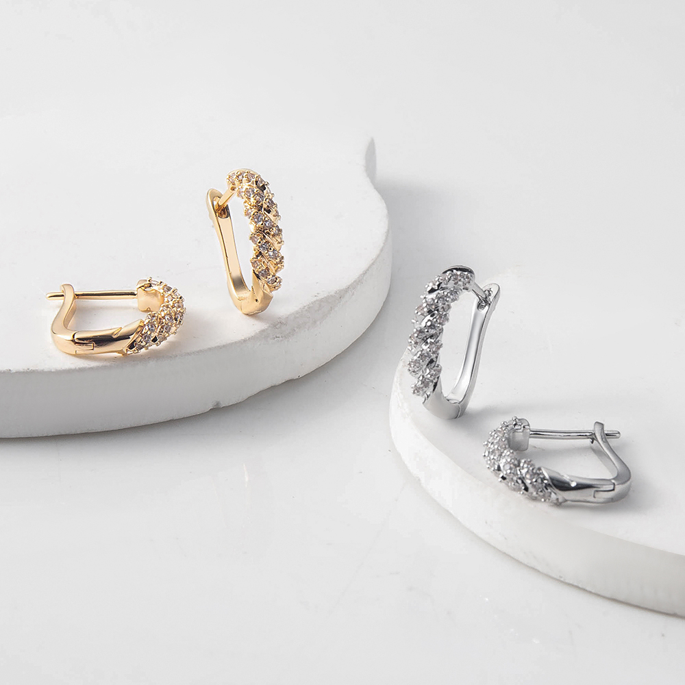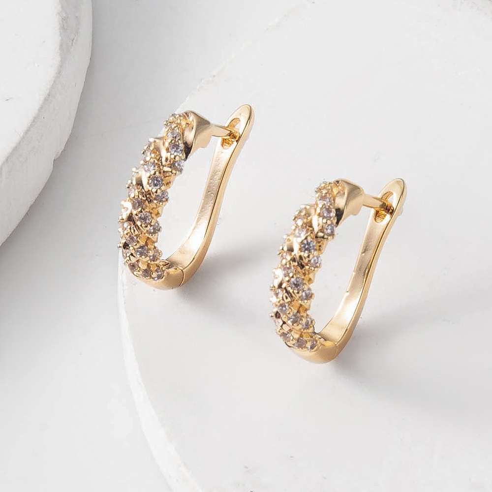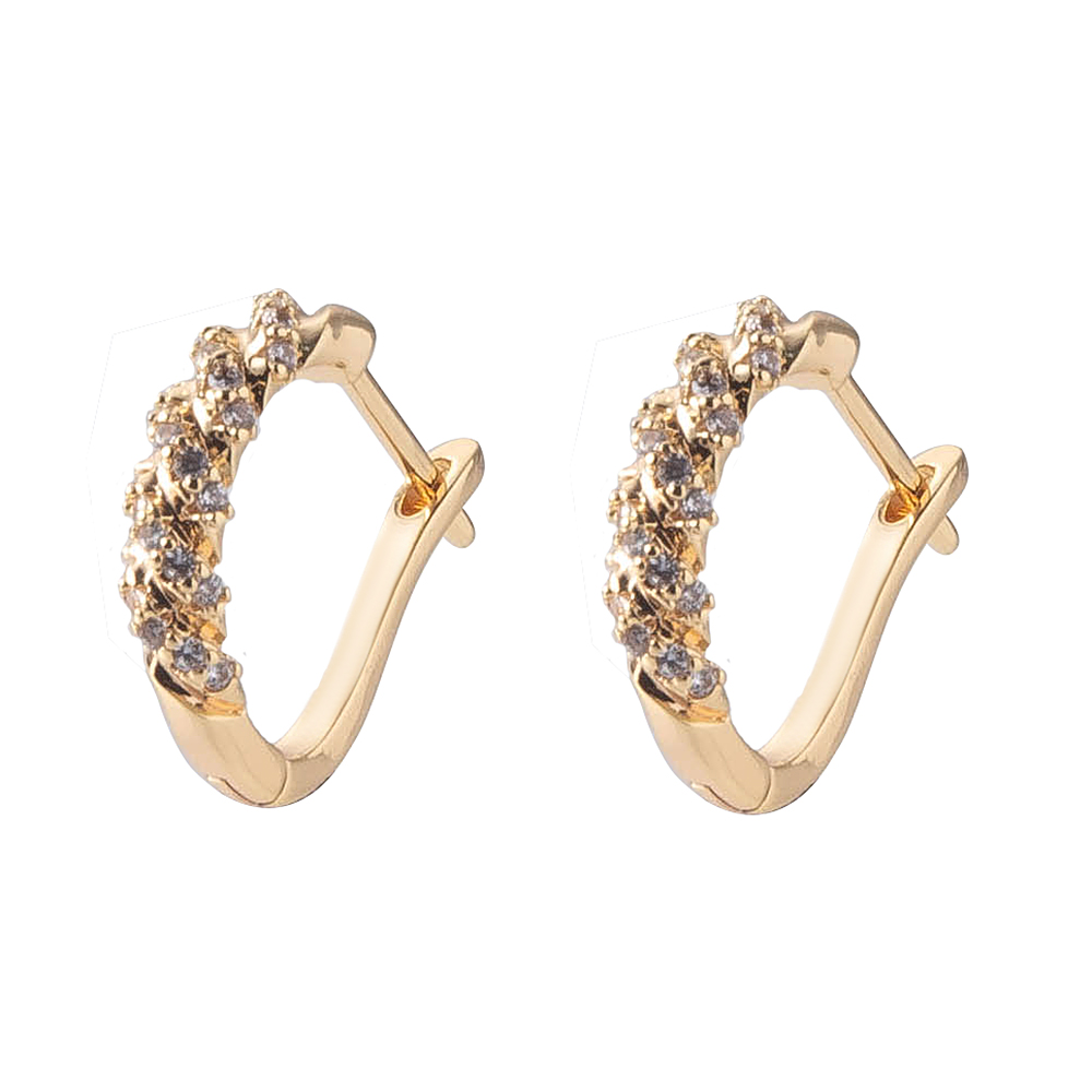 Boucles d'oreilles en laiton zircon cubique pavent, Placage, trois pièces & pour femme, doré, Vendu par fixé