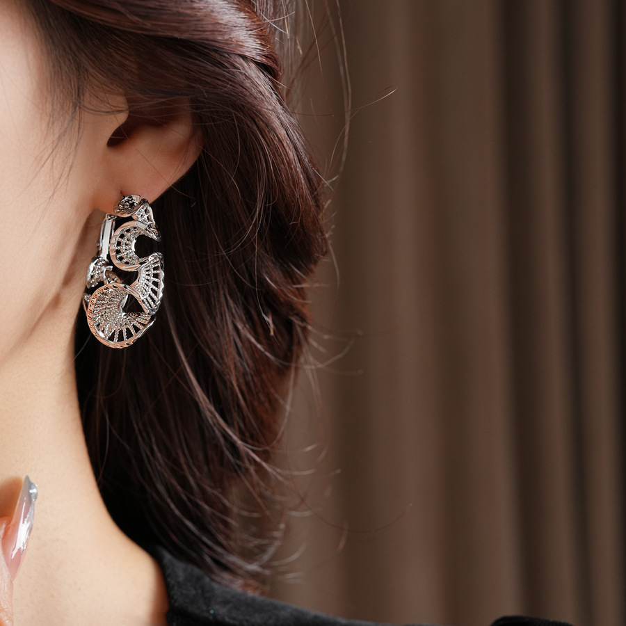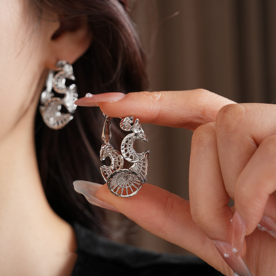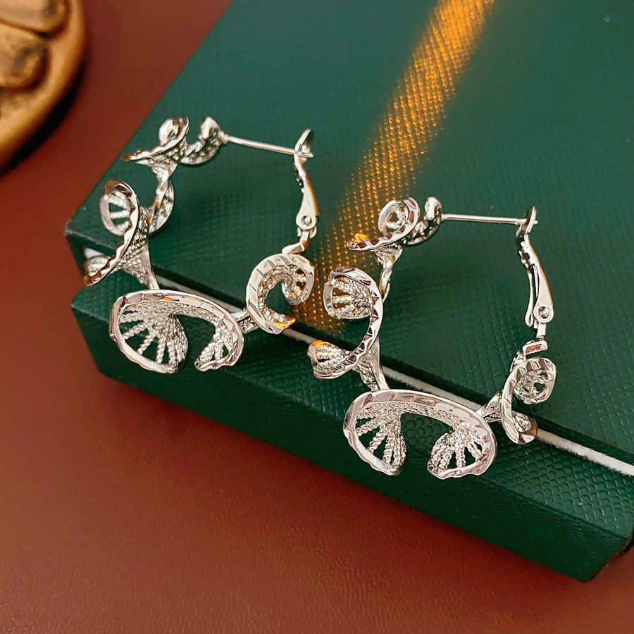 laiton boucle d'oreille leverback, Placage de couleur argentée, bijoux de mode & pour femme & creux, 30x36mm, Vendu par paire