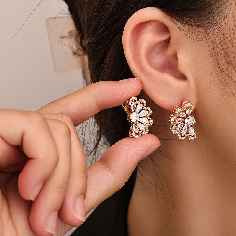 Boucles d'oreilles en laiton zircon cubique pavent, Placage, trois pièces & pour femme, doré, Vendu par fixé