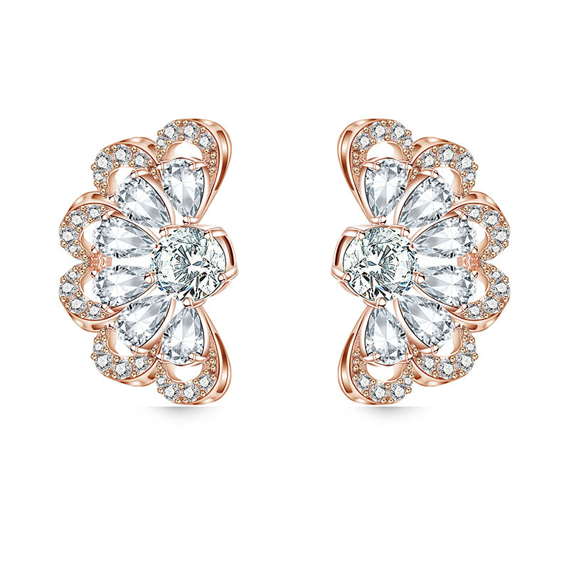 laiton boucle d'oreille leverback, éventail, Placage, pavé de micro zircon & pour femme & creux, 12x20mm, Vendu par PC