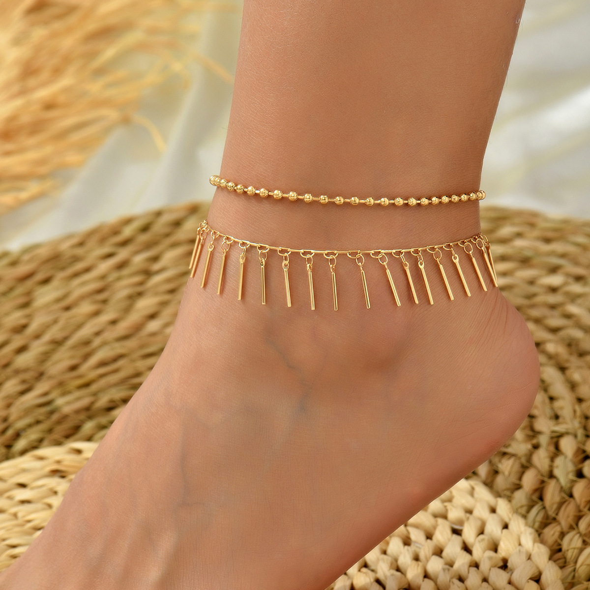 laiton bracelet de cheville, avec verre & plastique & fer, Placage, styles différents pour le choix & pour femme, Longueur Environ 8-10 pouce, Vendu par fixé