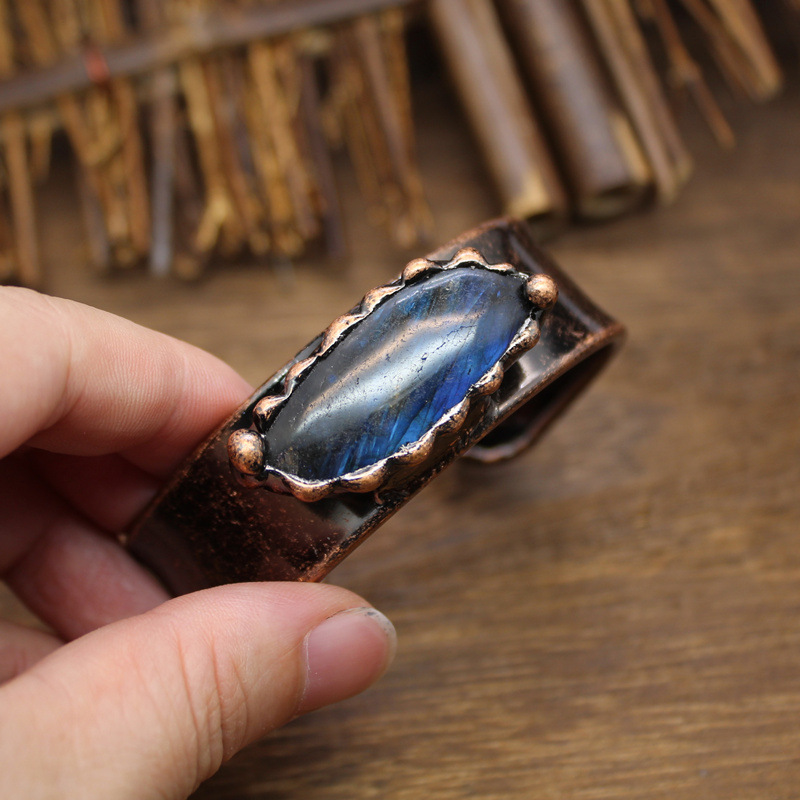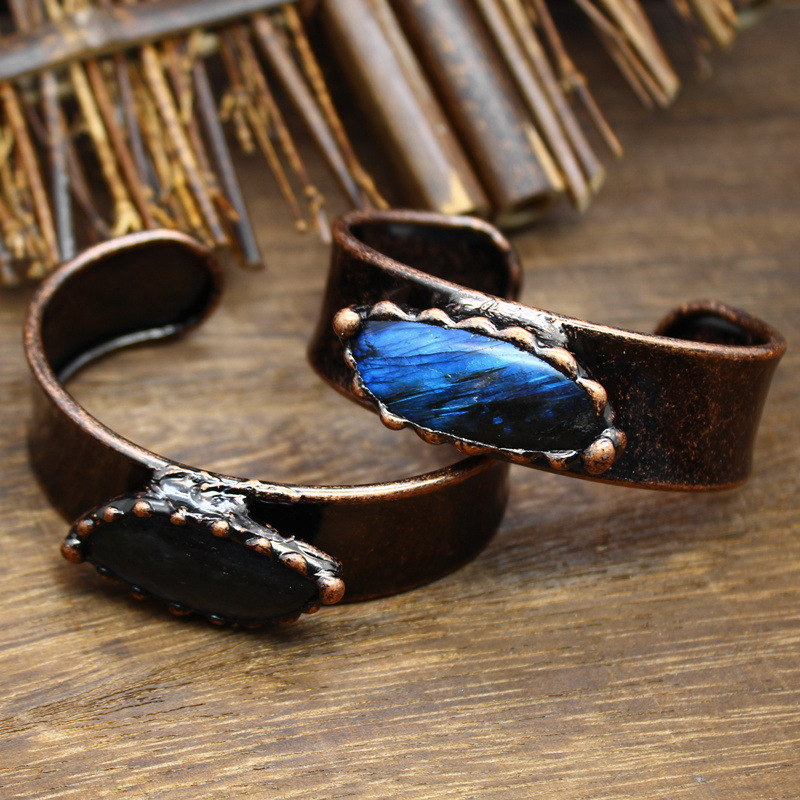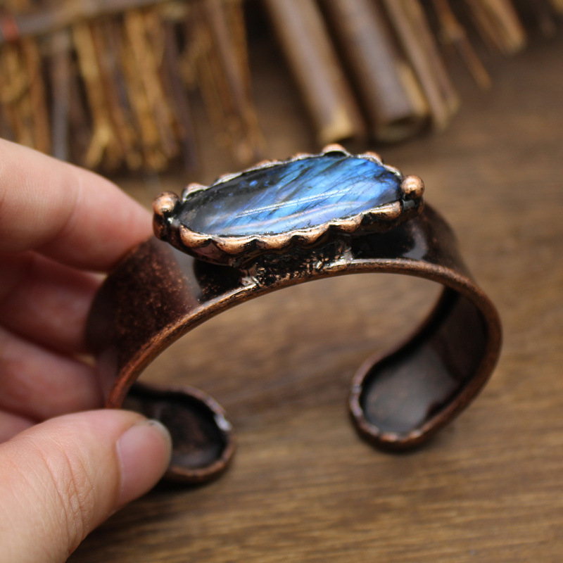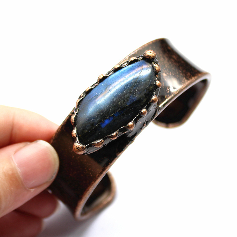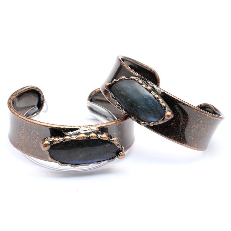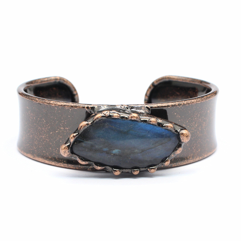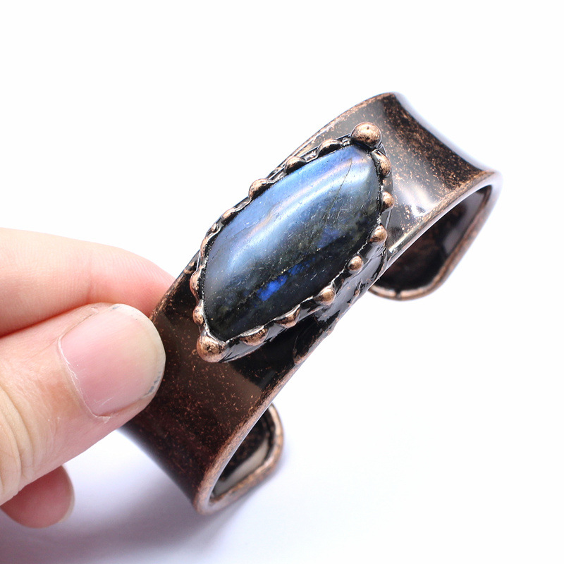 laiton bracelet manchette, avec Labradorite, Placage, pour femme, protéger l'environnement, sans nickel, plomb et cadmium, 70x20mm, Vendu par PC