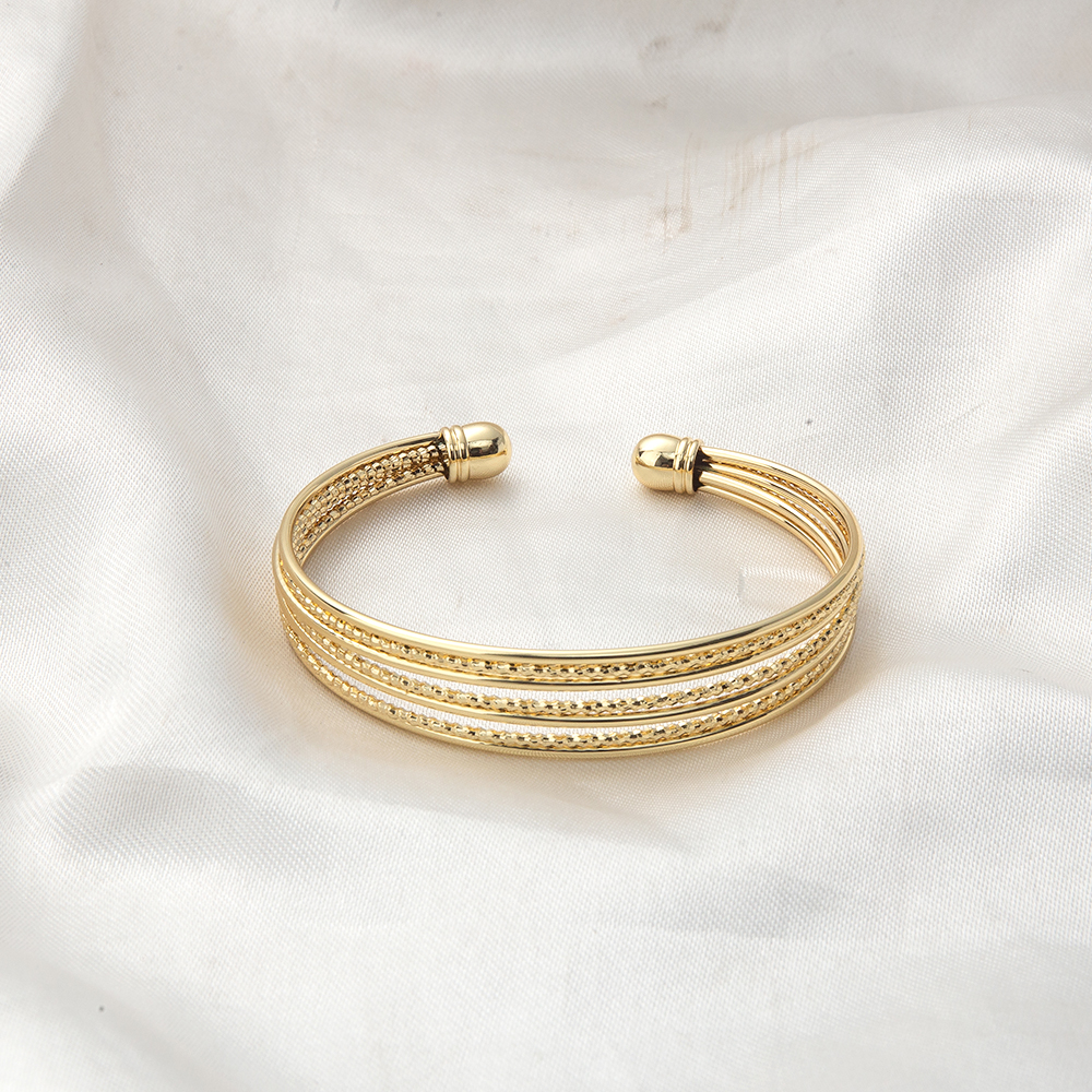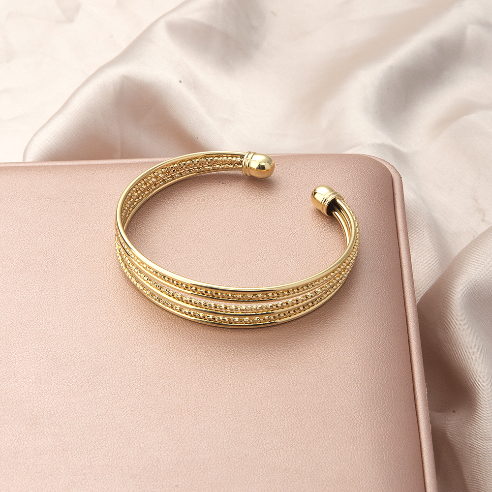 laiton bracelet manchette, Placage de couleur d'or, pour femme, protéger l'environnement, sans nickel, plomb et cadmium, 63x12x56mm, Vendu par PC