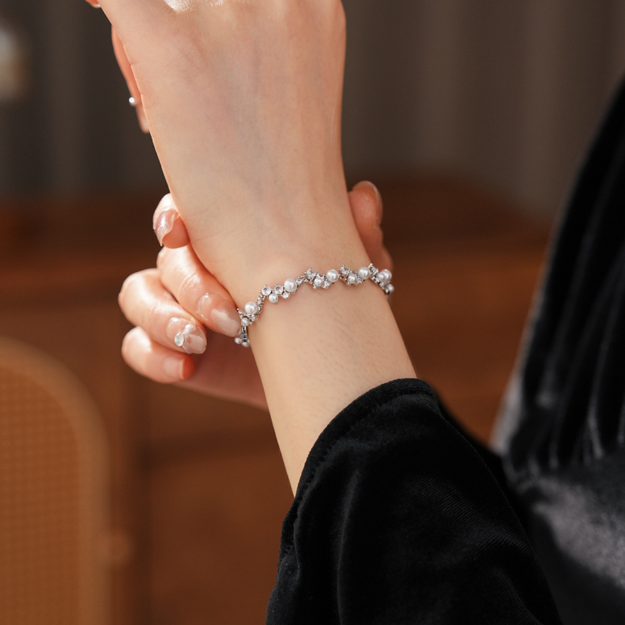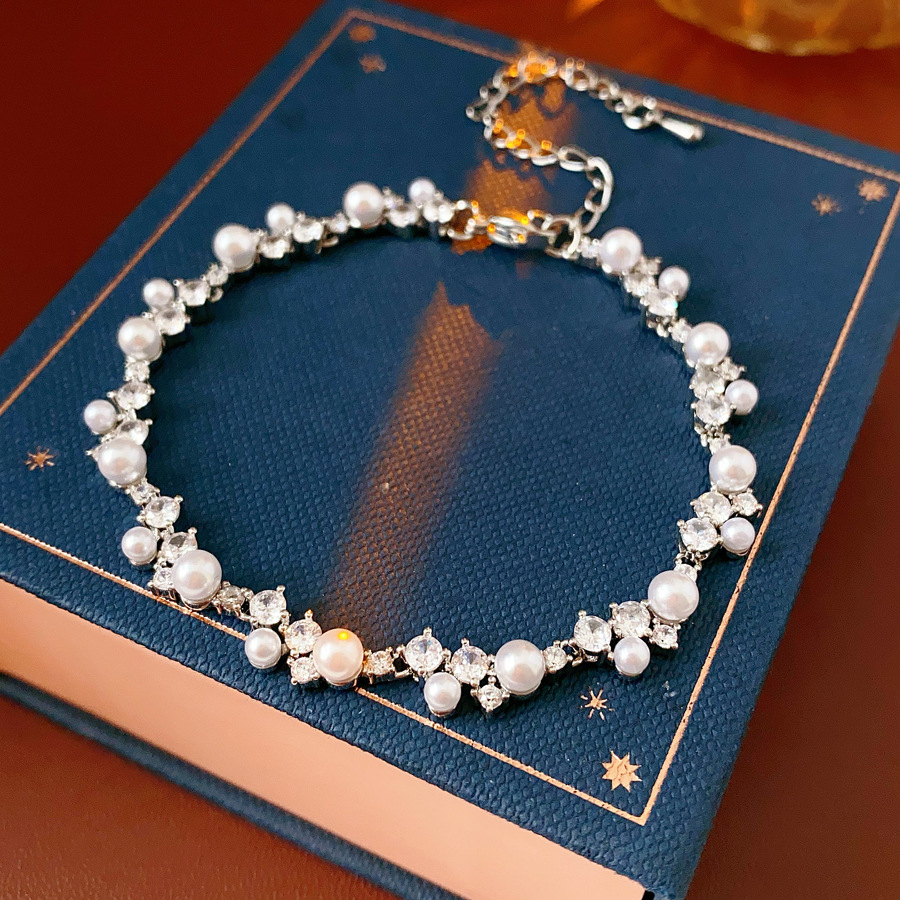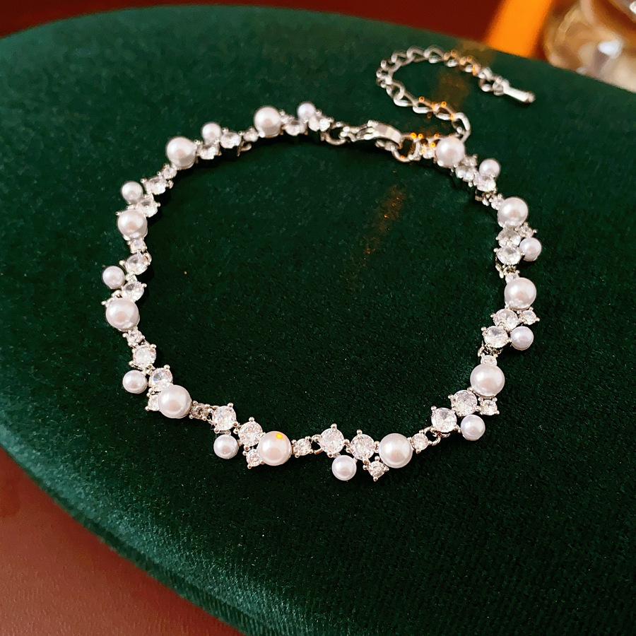 laiton bracelet, avec perle de plastique, Placage de couleur argentée, pavé de micro zircon & pour femme, Longueur Environ 9.3 pouce, Vendu par PC