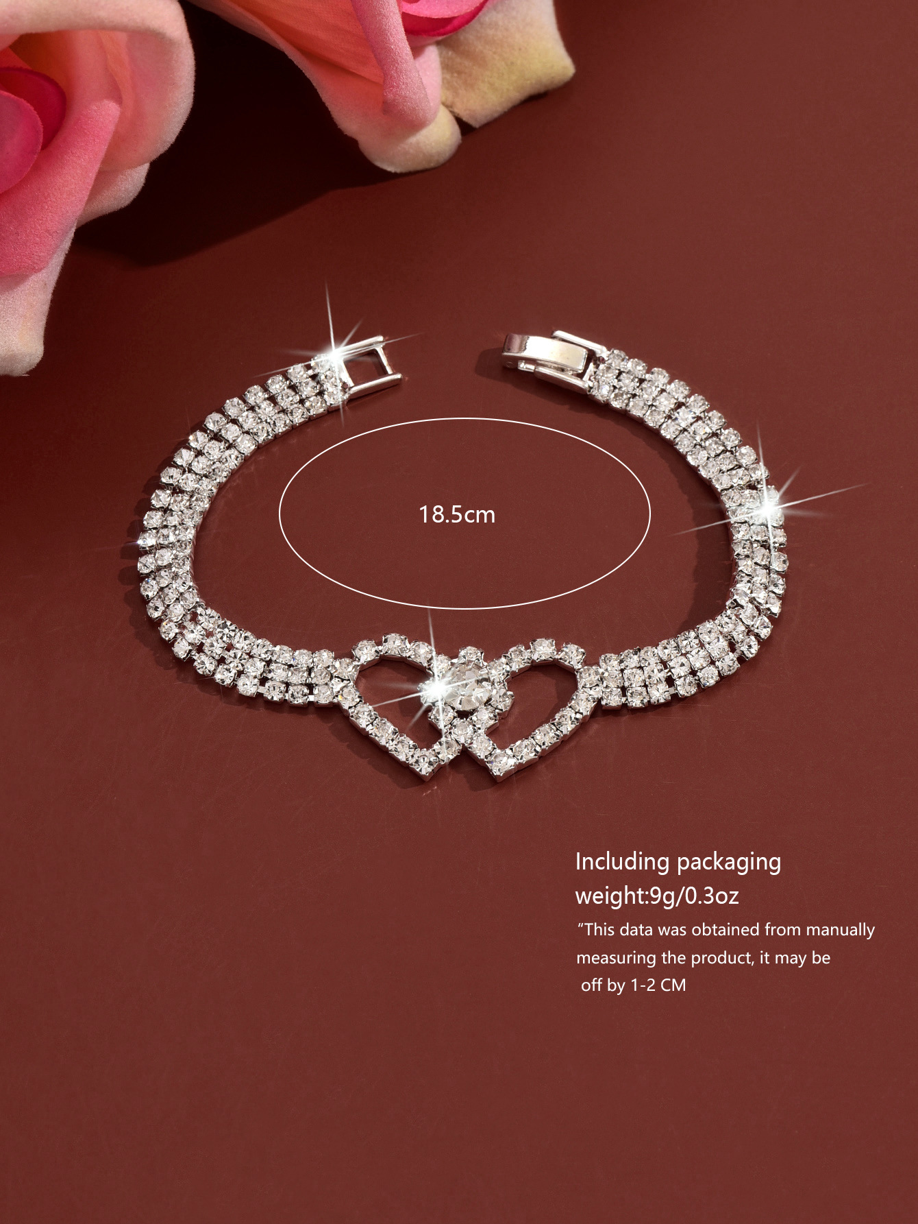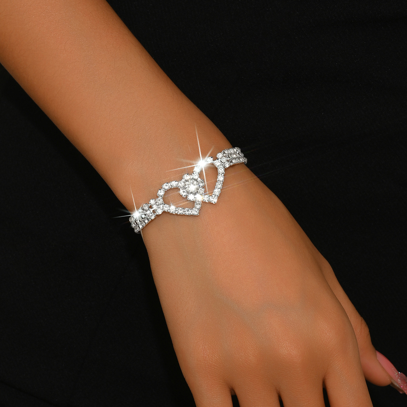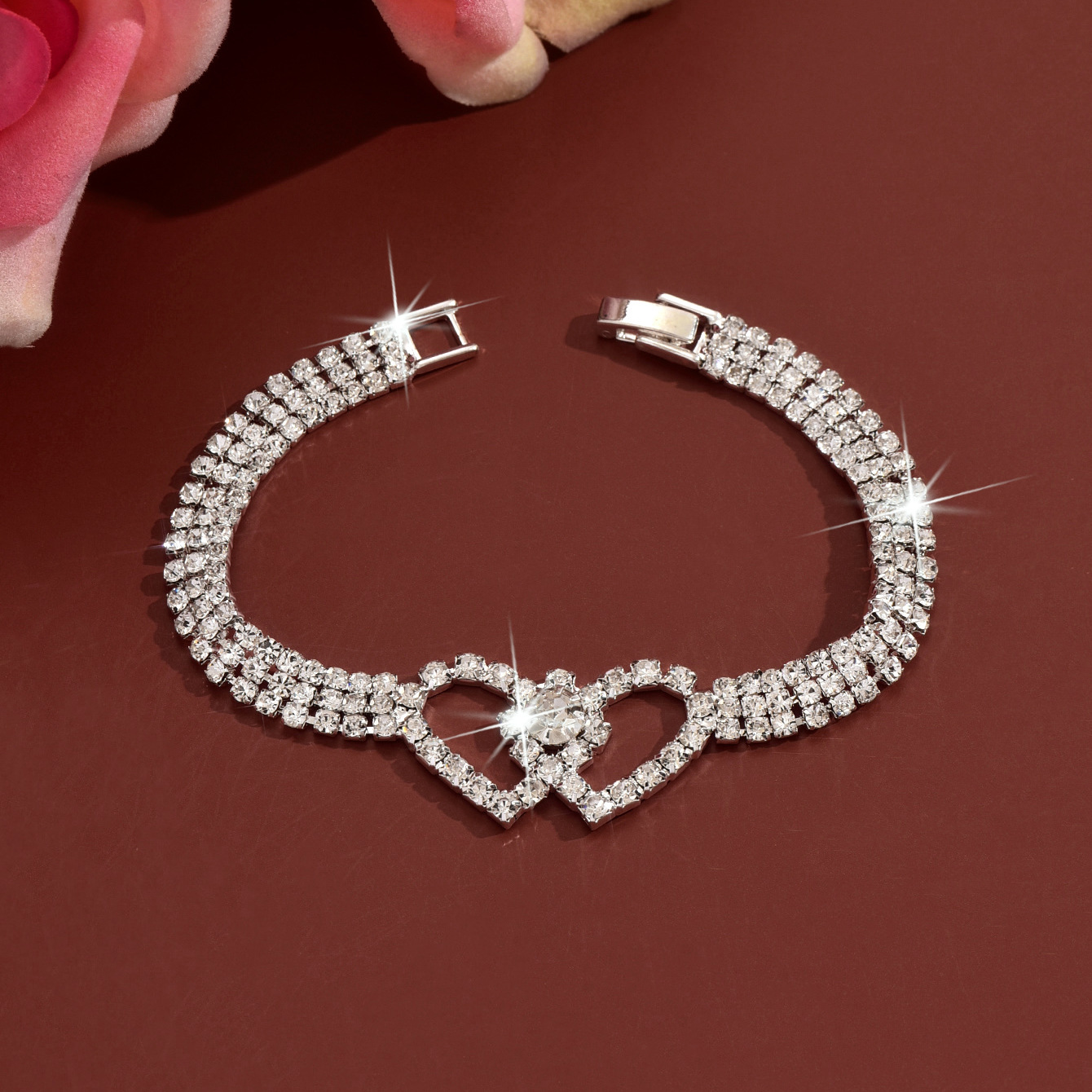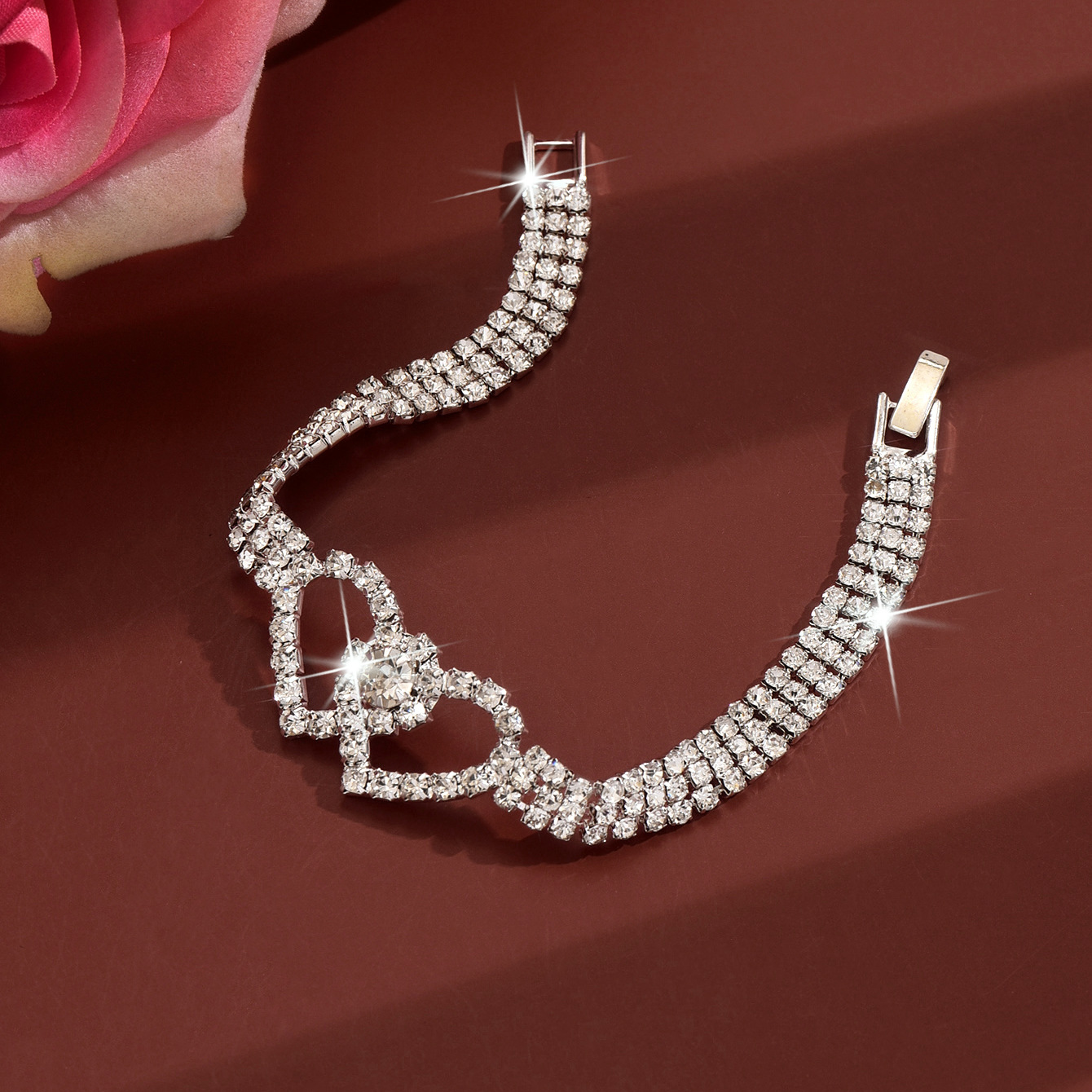 laiton bracelet, coeur, Placage de couleur argentée, pour femme & avec strass, Longueur Environ 7.3 pouce, Vendu par PC