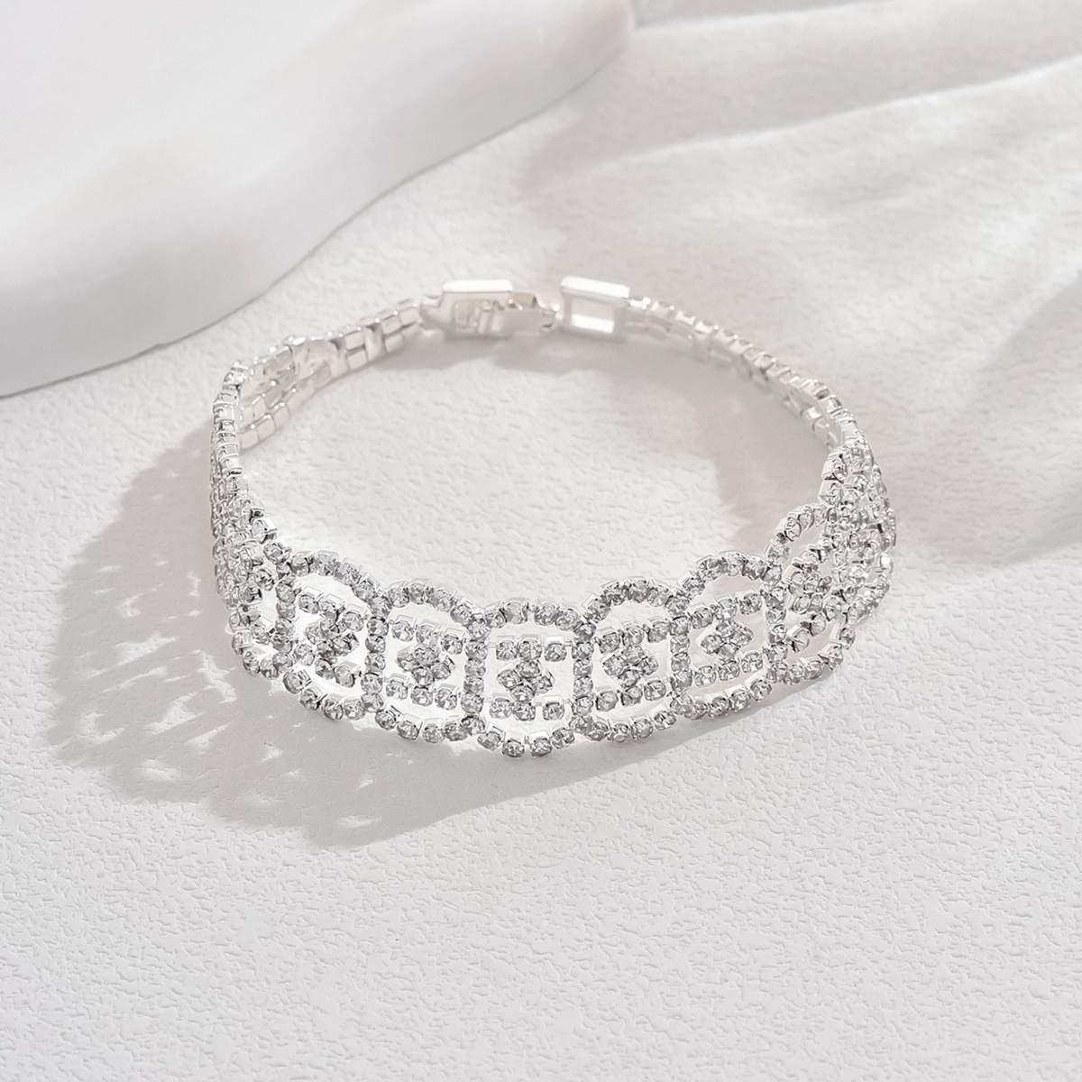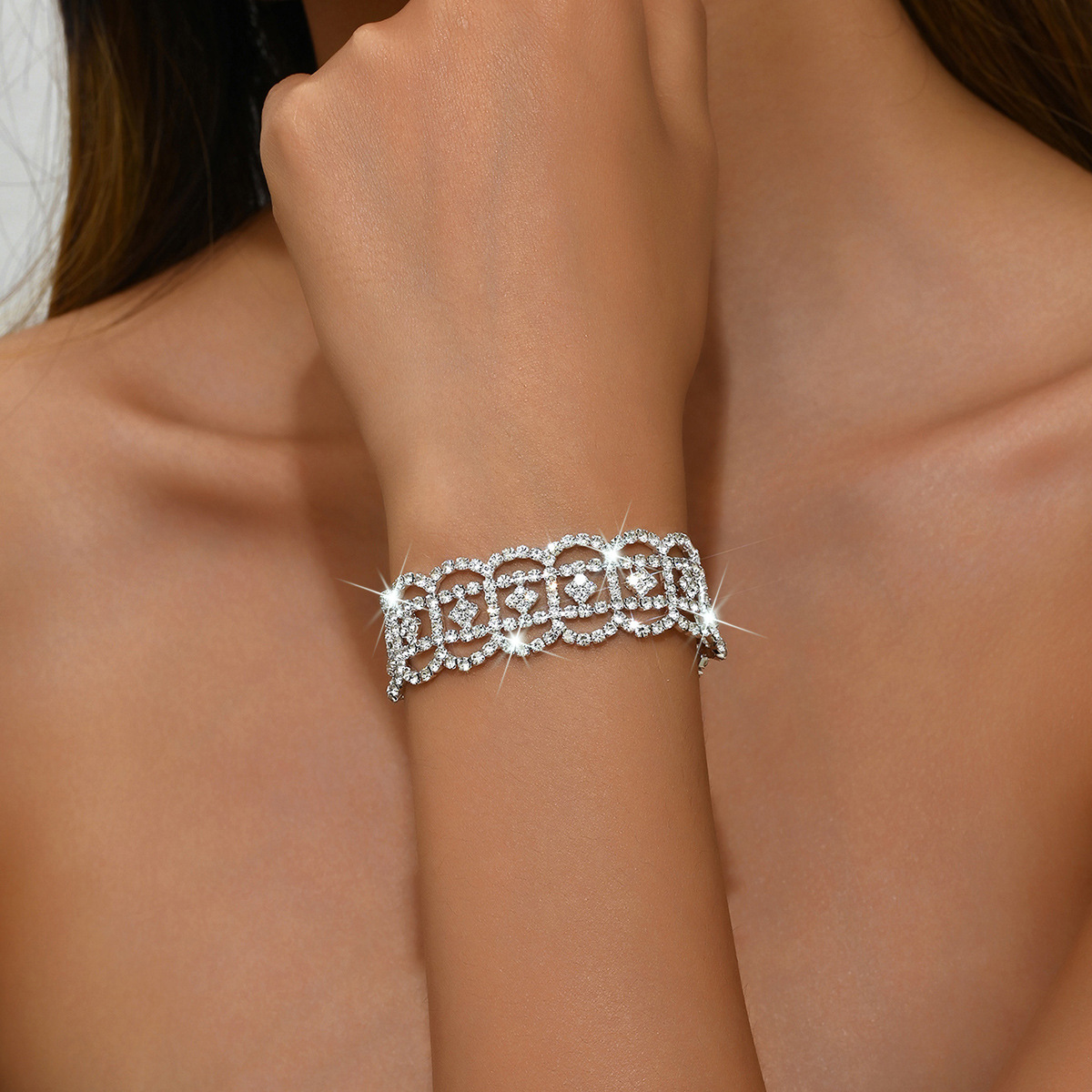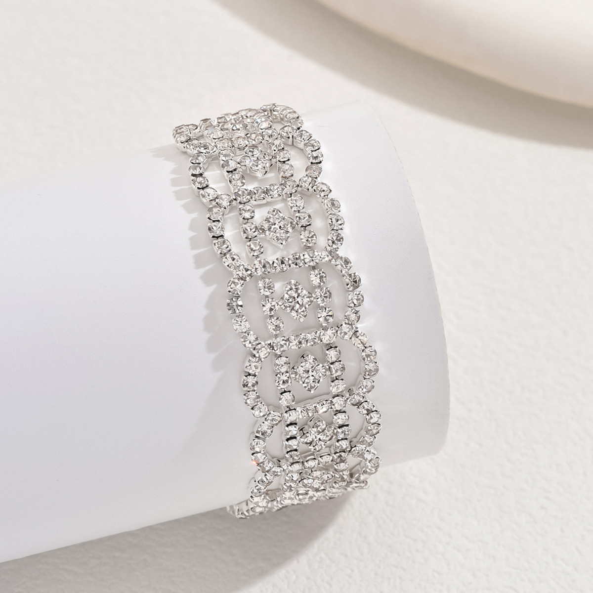 laiton bracelet, Placage de couleur argentée, pour femme & avec strass, Longueur Environ 7 pouce, Vendu par PC