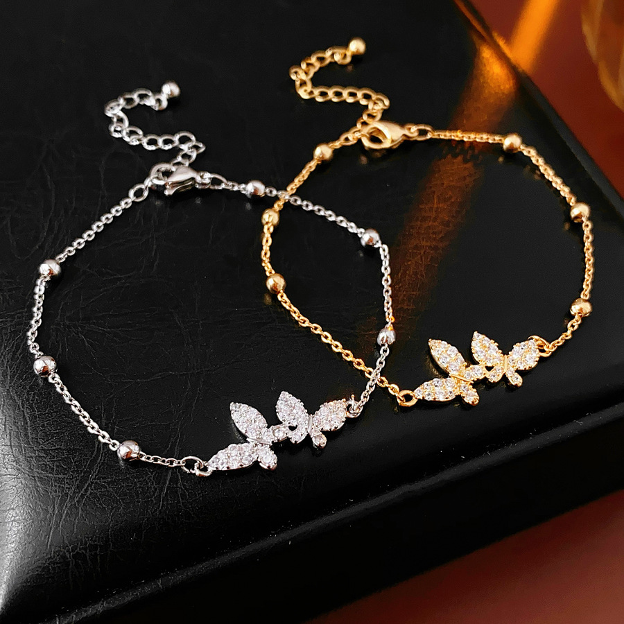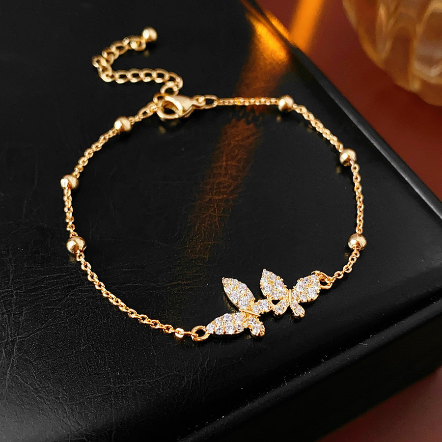 laiton bracelet, papillon, Placage, pavé de micro zircon & pour femme, plus de couleurs à choisir, Longueur Environ 7.9 pouce, Vendu par PC