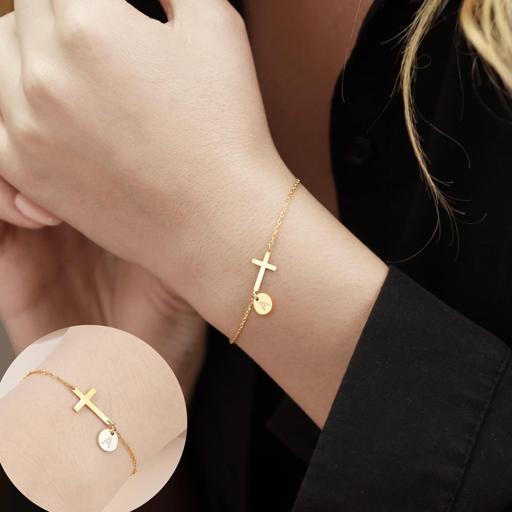 laiton bracelet, Plat rond, Placage de couleur d'or, styles différents pour le choix & avec le motif de lettre & pour femme, Longueur Environ 6-8 pouce, Vendu par PC