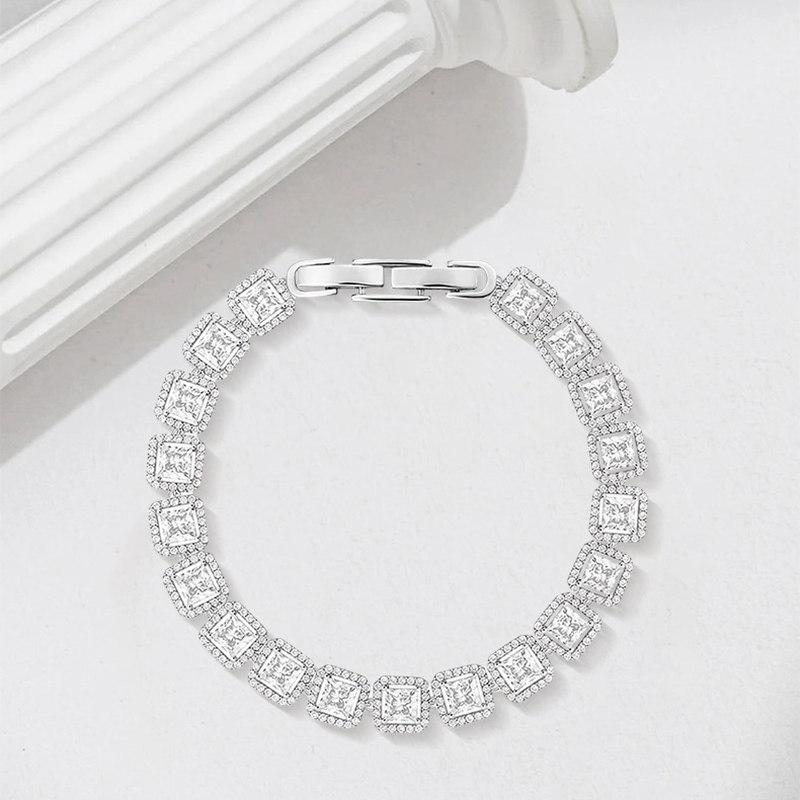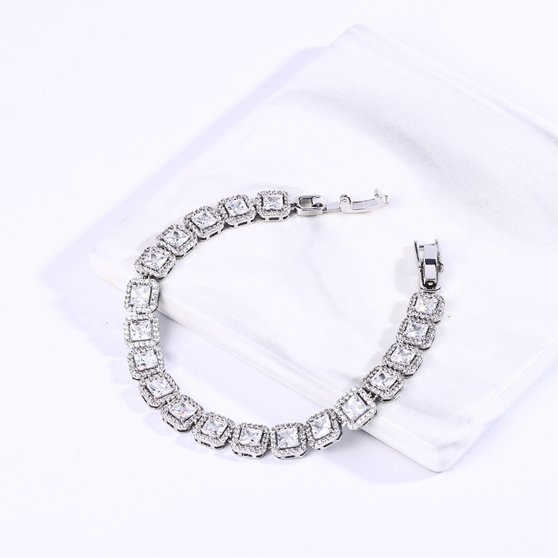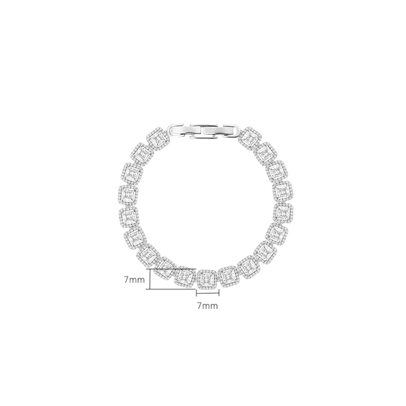 laiton bracelet, Motif géométrique, Placage, pavé de micro zircon & pour femme, argent, Longueur Environ 6.7 pouce, Vendu par PC