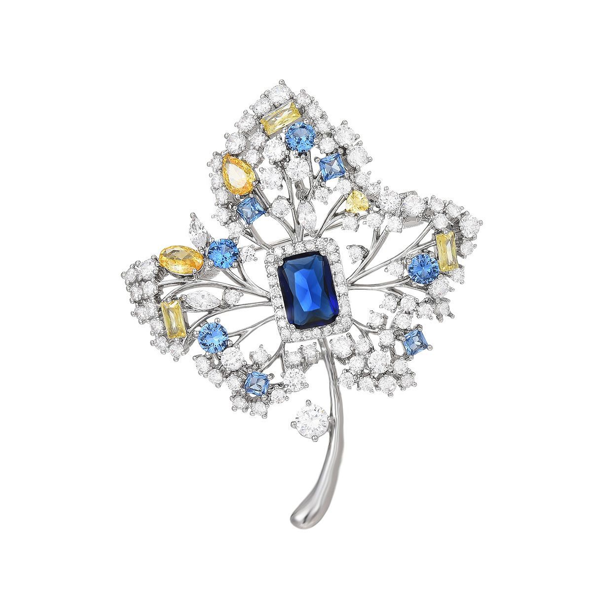 laiton broche, Placage, pavé de micro zircon & pour femme, argent, 58x47mm, Vendu par PC