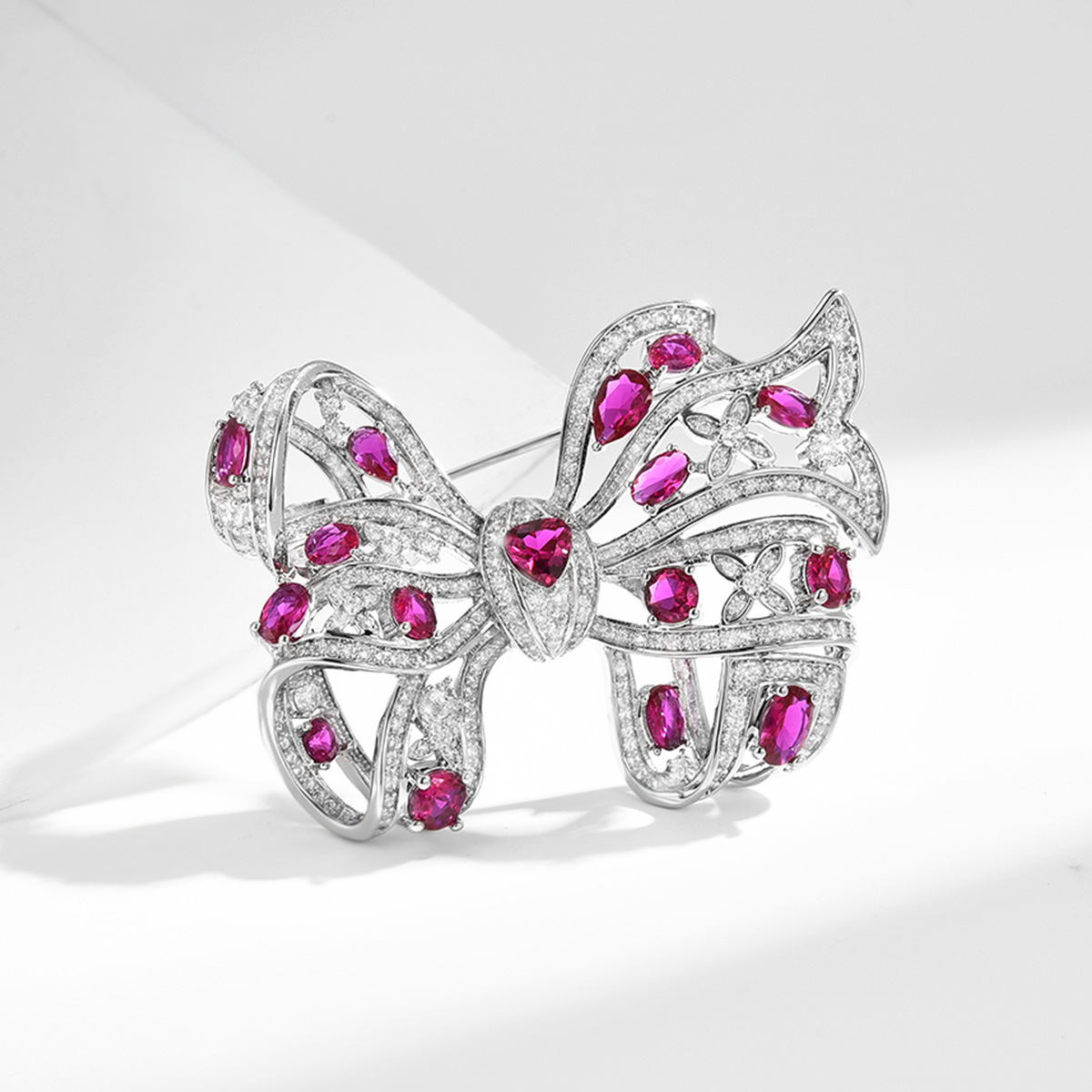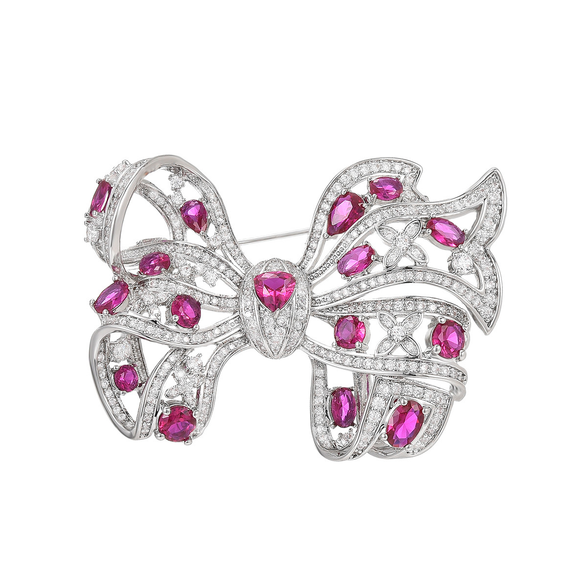 laiton broche, pavé de micro zircon & pour femme, argent, 34x49mm, Vendu par PC