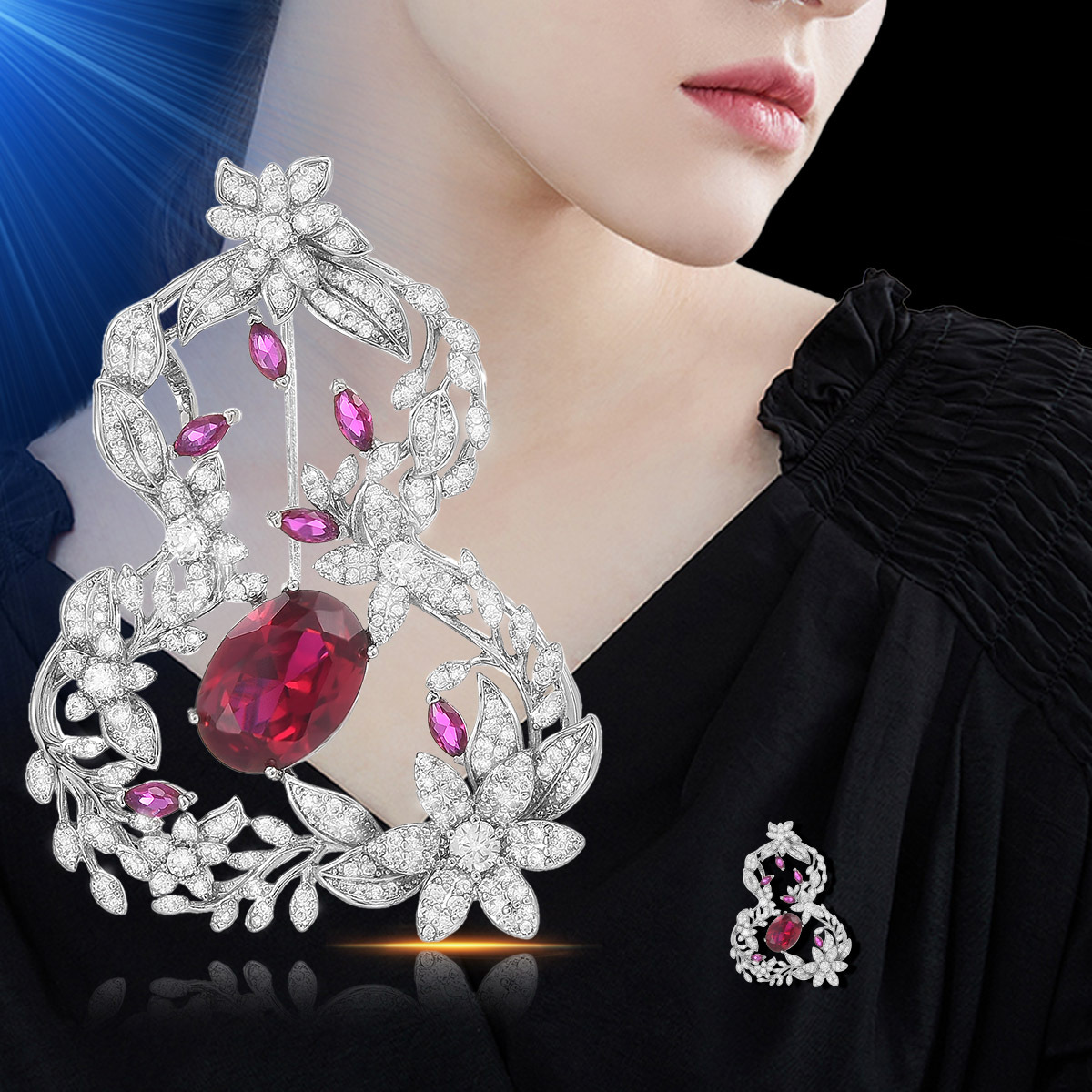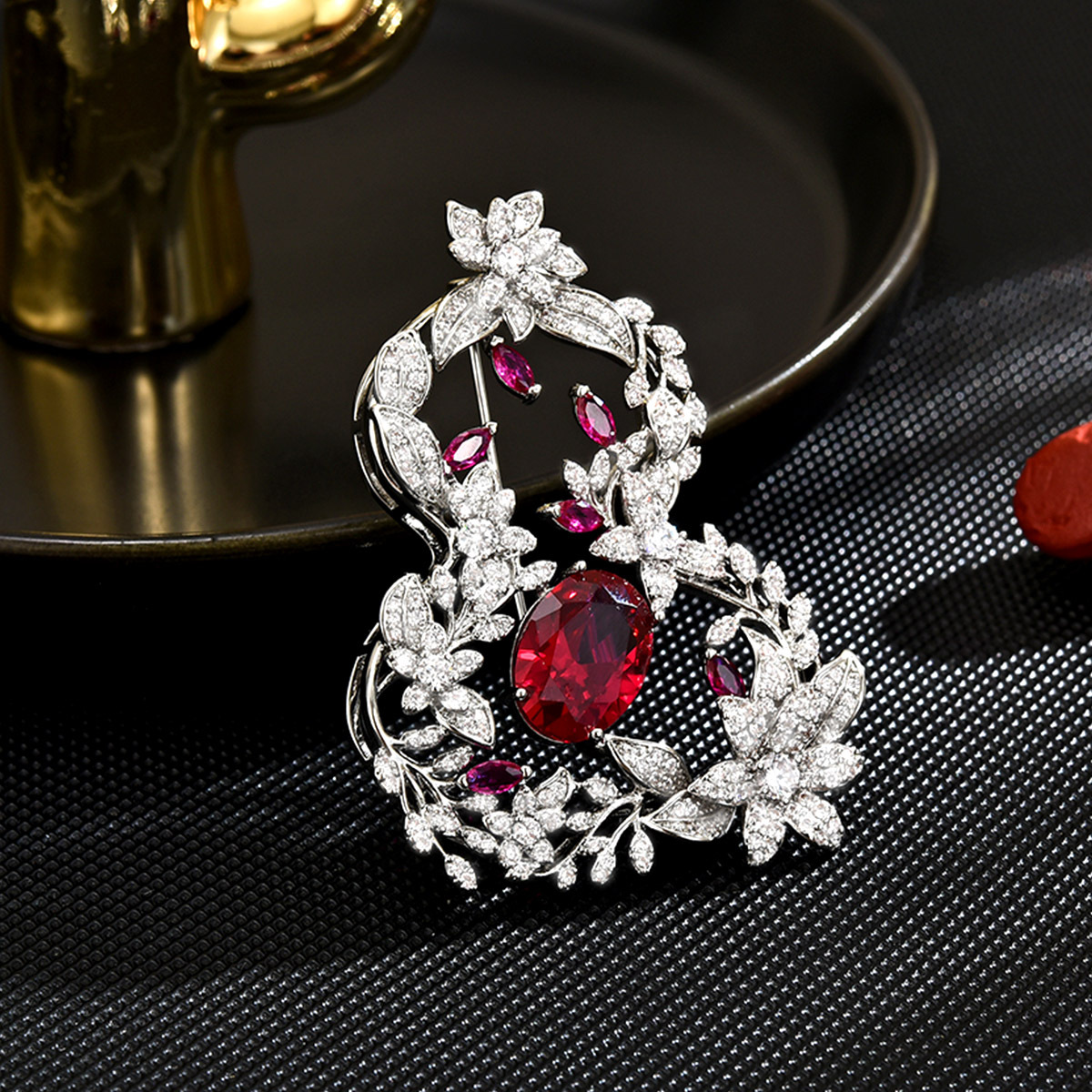laiton broche, Placage, pavé de micro zircon & pour femme, argent, 38x52mm, Vendu par PC