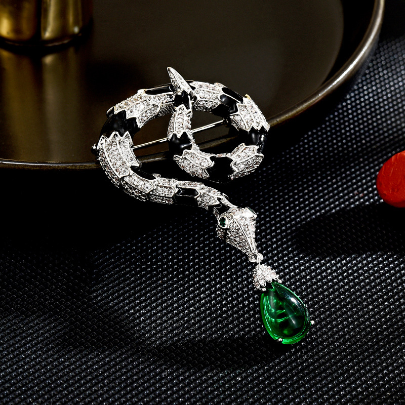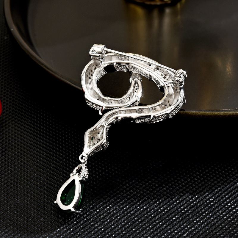 laiton broche, pavé de micro zircon & pour femme, argent, 56x32mm, Vendu par PC