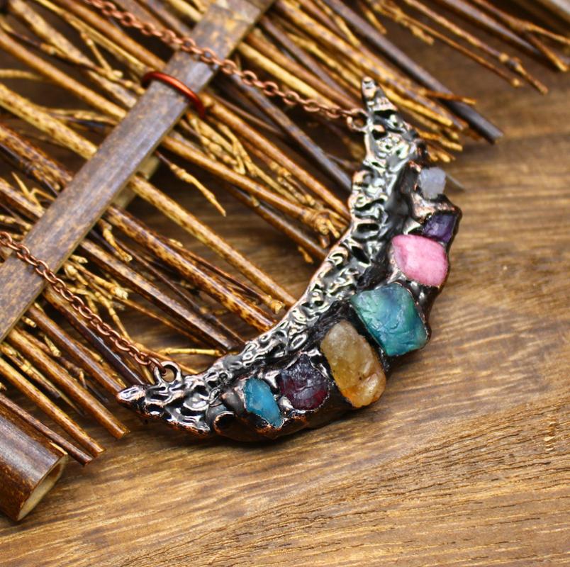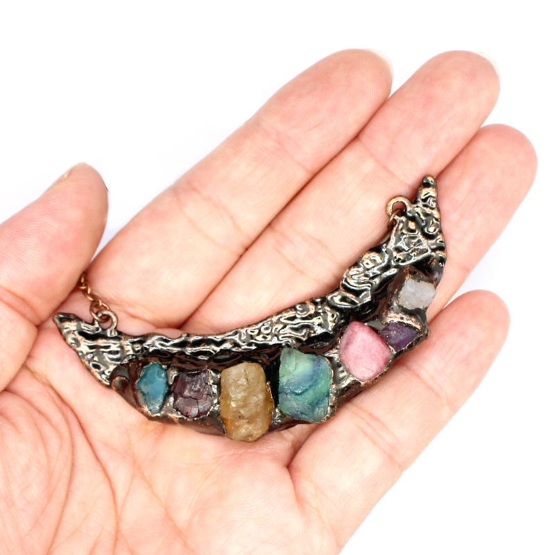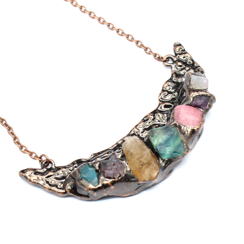 laiton collier, avec pierre gemme, Placage, pour femme, protéger l'environnement, sans nickel, plomb et cadmium, 69x20mm, Vendu par PC