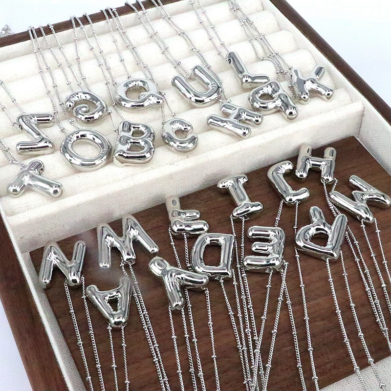 laiton collier, Lettre d’alphabet, Placage de couleur platine, styles différents pour le choix & pour femme, Longueur Environ 17.7 pouce, Vendu par PC