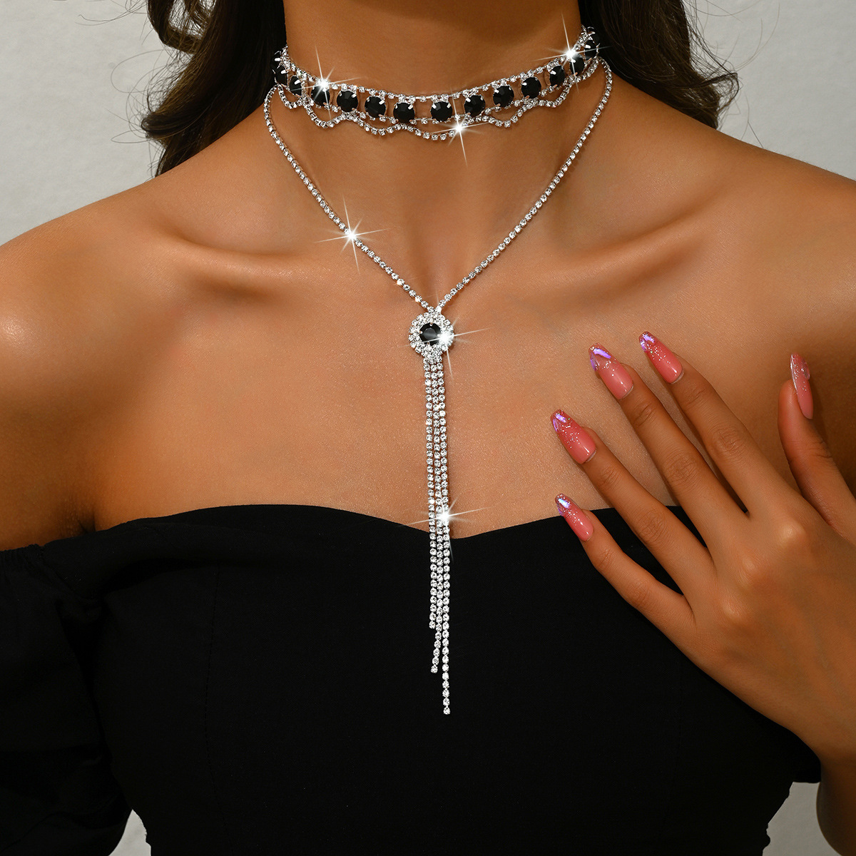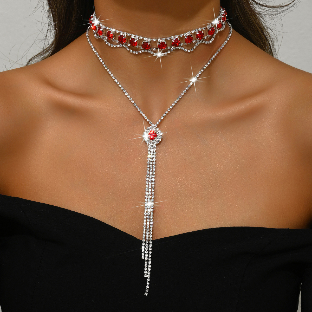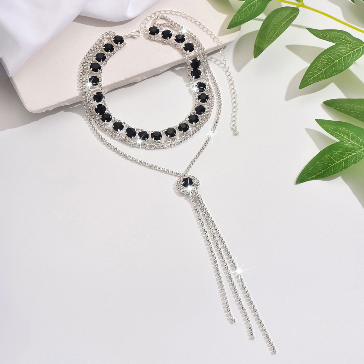 laiton collier, Placage de couleur argentée, Double couche & pour femme & avec strass, plus de couleurs à choisir, Vendu par PC