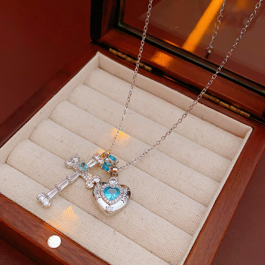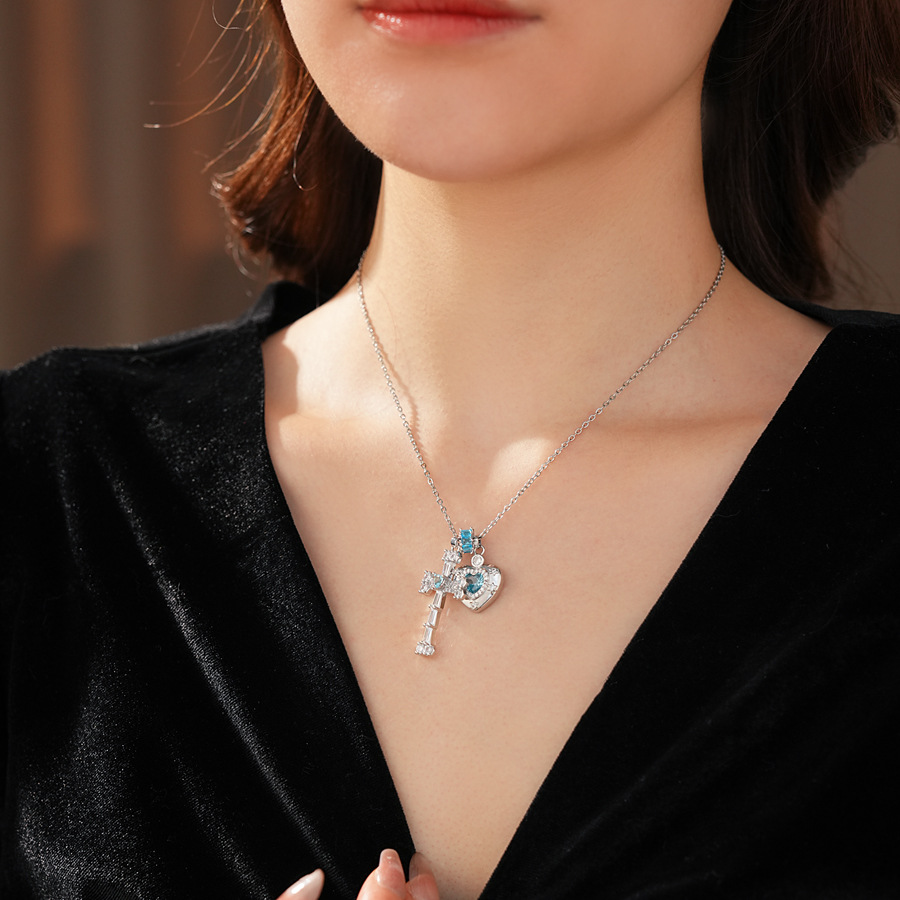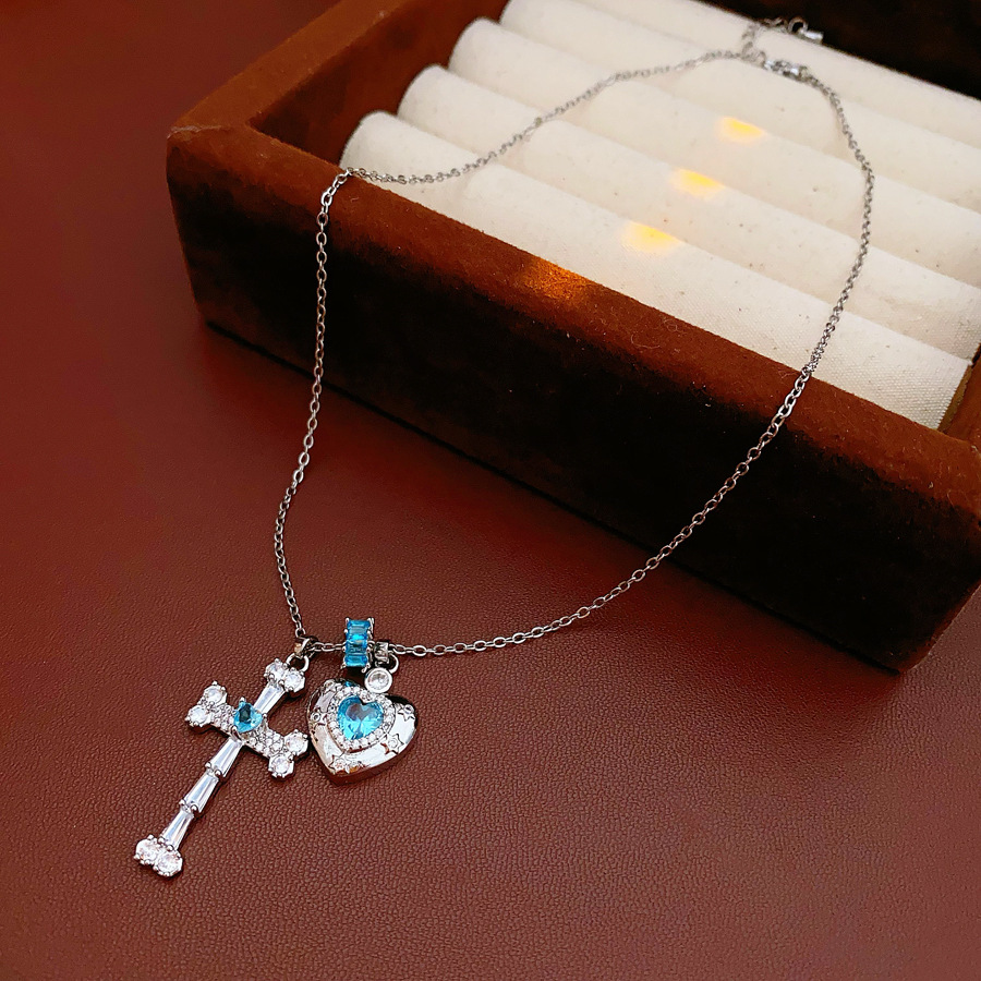 laiton collier, croix, Placage de couleur argentée, pavé de micro zircon & pour femme, Longueur Environ 15.7 pouce, Vendu par PC