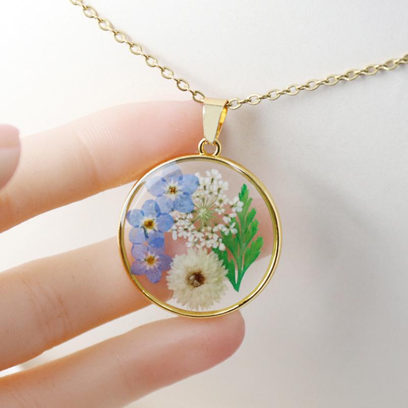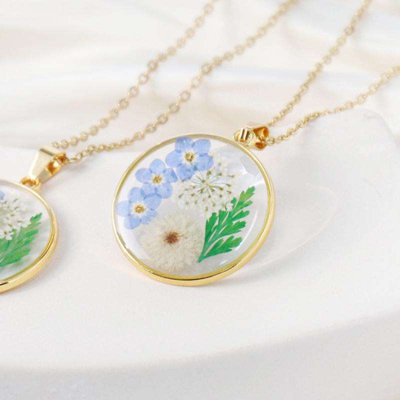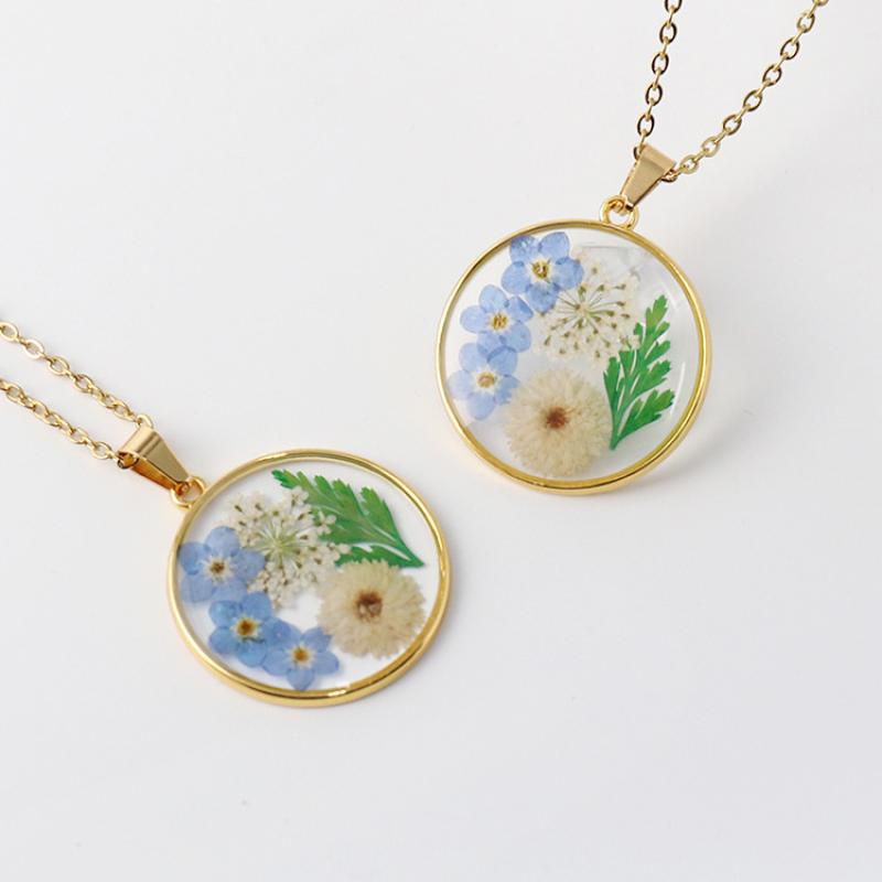 laiton collier, avec Fleurs séchées & résine, goutté d'époxy, bijoux de mode & pour femme, doré, Longueur Environ 45 cm, 6PC/sac, Vendu par sac