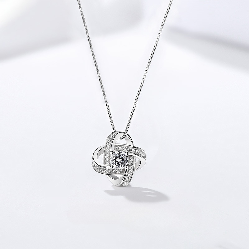 laiton collier, Trèfle à quatre feuilles, Placage, bijoux de mode & avec strass, argent, protéger l'environnement, sans nickel, plomb et cadmium, 16x13mm, Vendu par PC