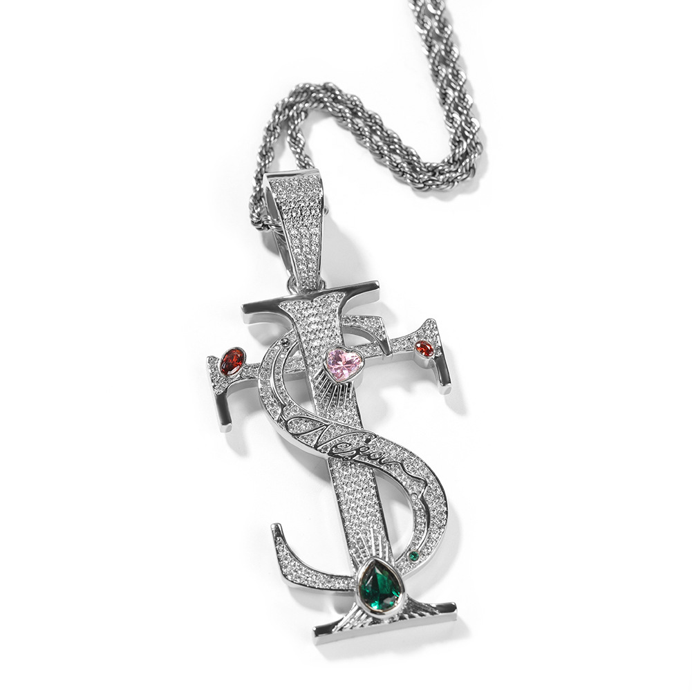 laiton collier, croix, Placage, chaîne Français corde de Français & pavé de micro zircon & pour homme, plus de couleurs à choisir, Longueur Environ 24 pouce, Vendu par PC