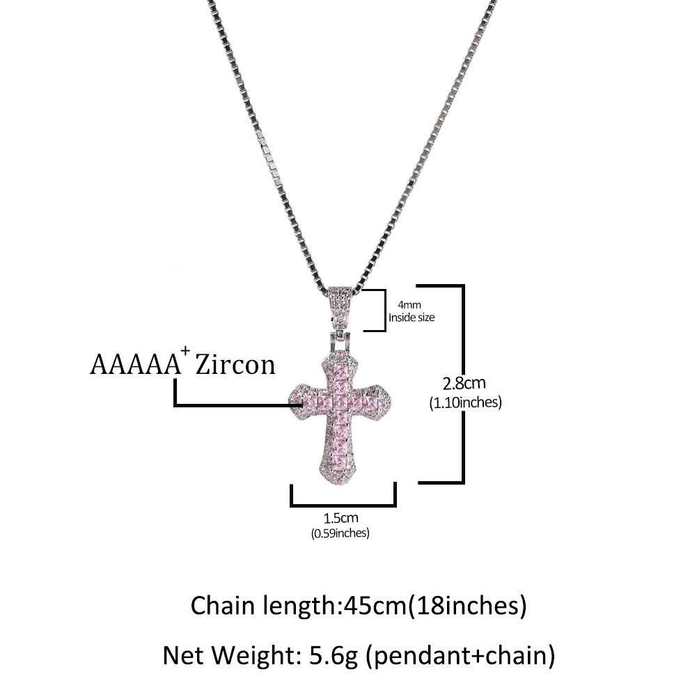 laiton collier, croix, Placage, chaîne de boîte & pavé de micro zircon & pour femme, plus de couleurs à choisir, Longueur Environ 18 pouce, Vendu par PC