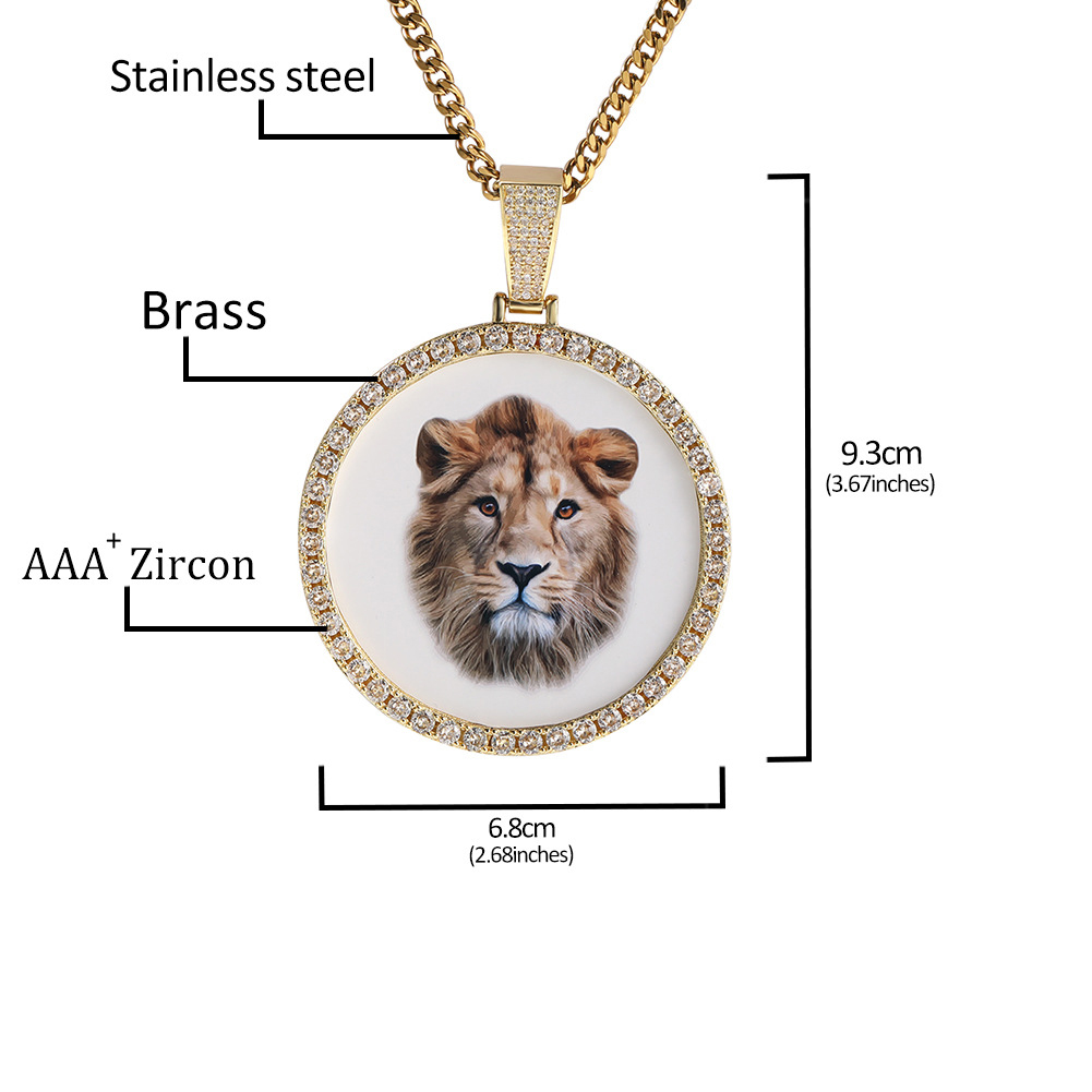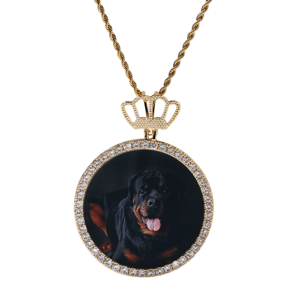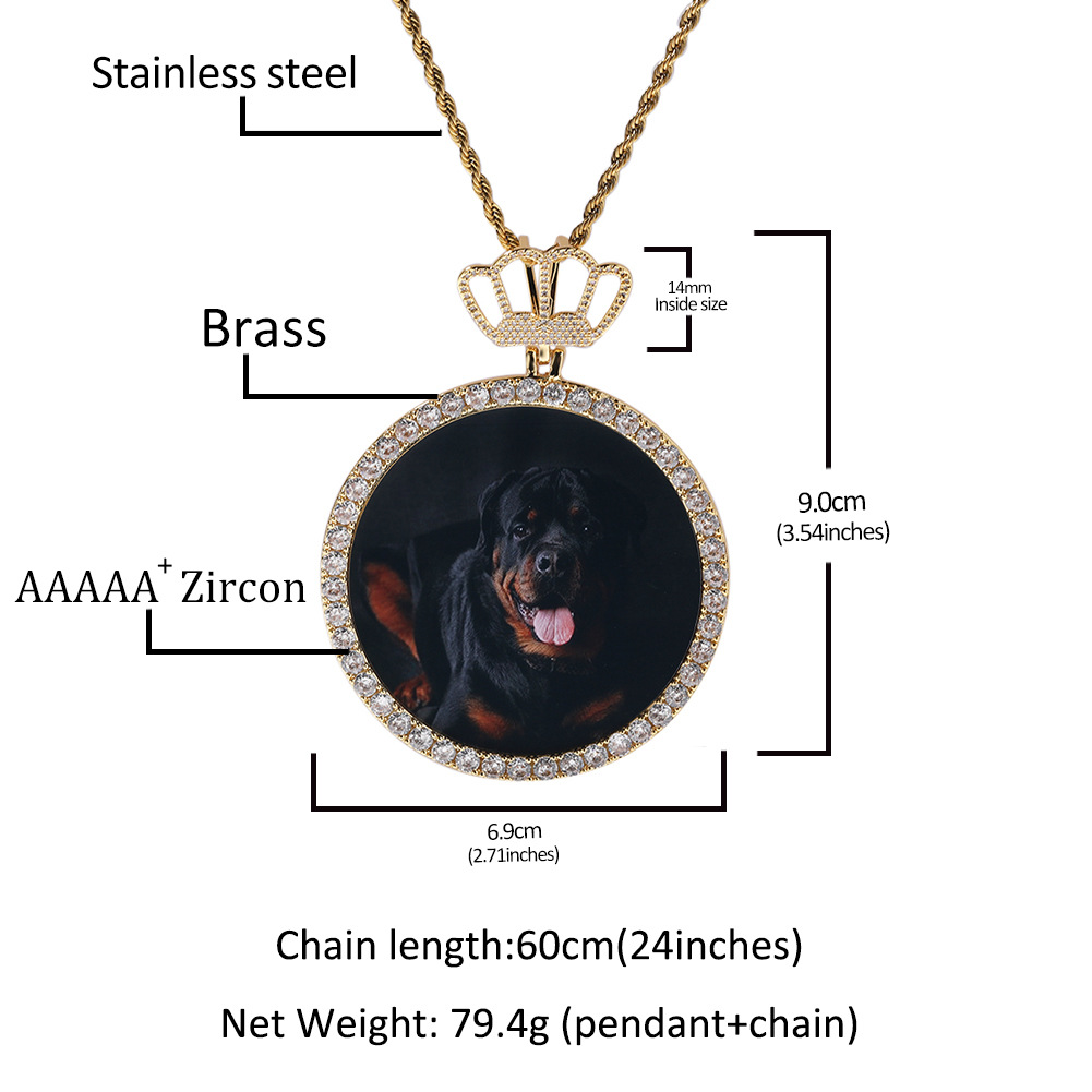 1:XL round photo (gold)  24inch twist chain2:XL round photo (silver)  24inch twist chain3:XL round photo (Rose Gold)  24inch twist chain4:Crown XL round (gold) 3mm 24inch twist chain
