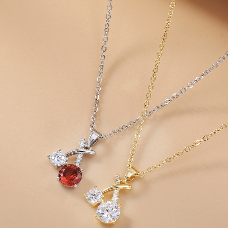 laiton collier, cerise, Placage, pavé de micro zircon & pour femme, plus de couleurs à choisir, Longueur Environ 17 pouce, Vendu par PC
