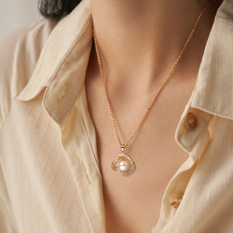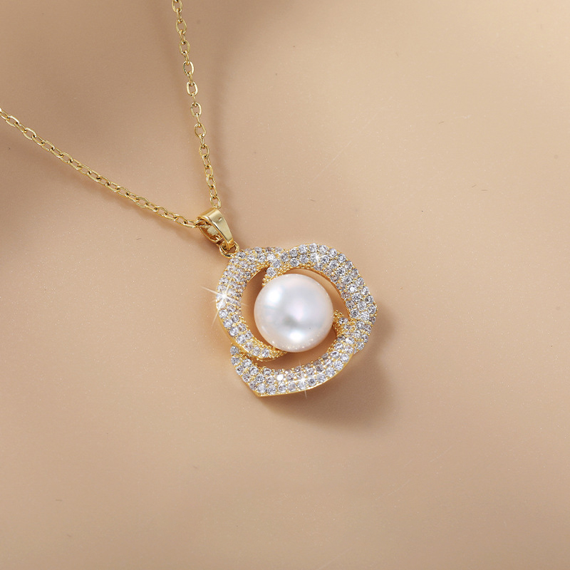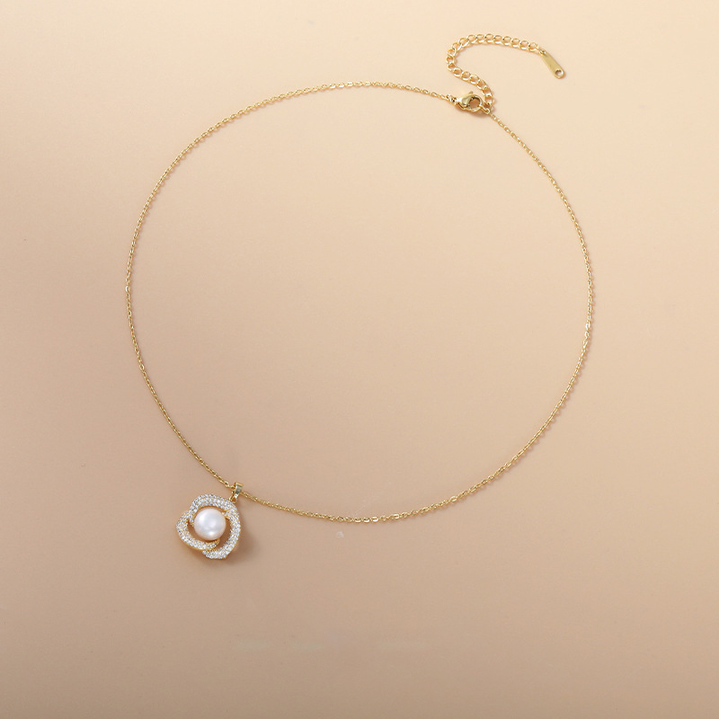 laiton collier, avec perle de plastique, Placage de couleur d'or, pavé de micro zircon & pour femme & creux, Longueur Environ 15.5 pouce, Vendu par PC
