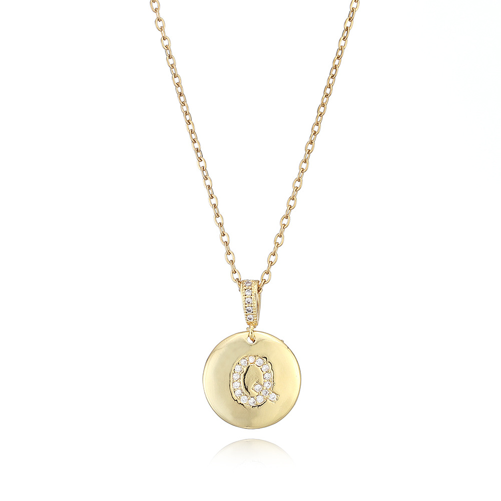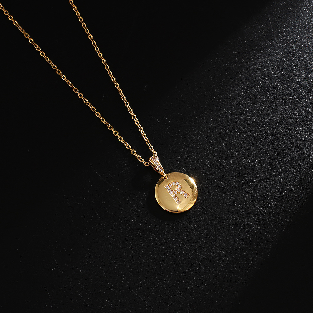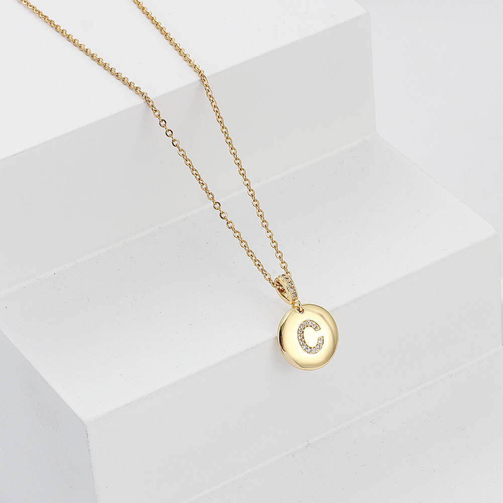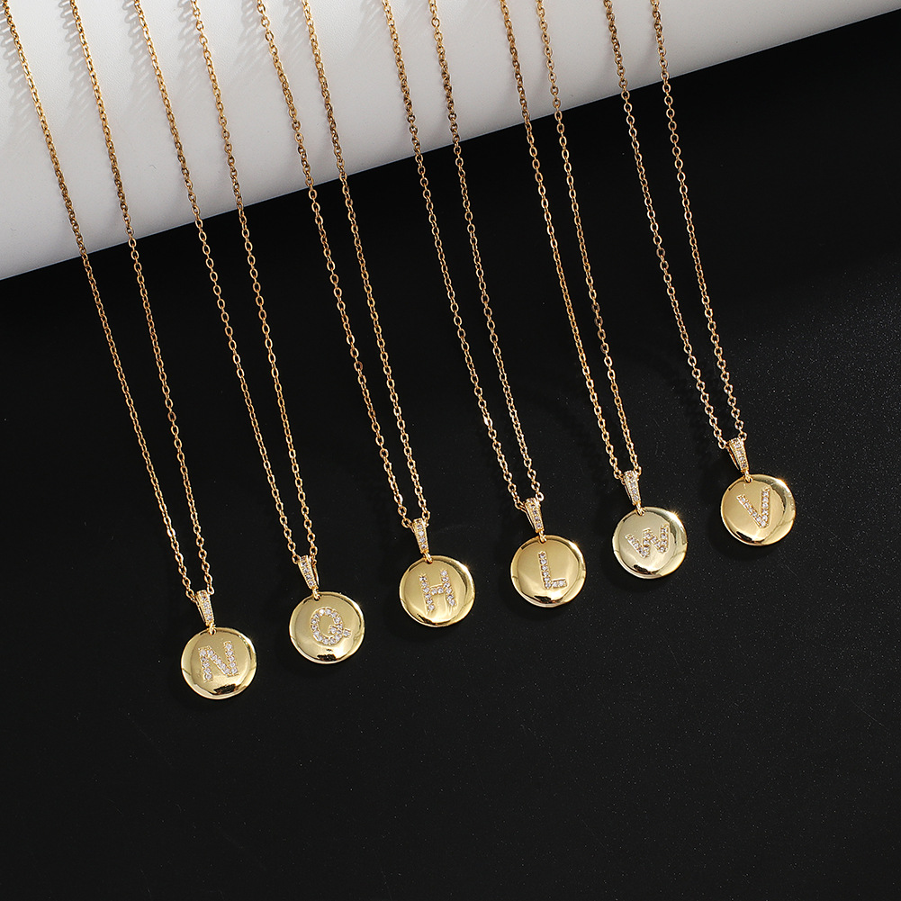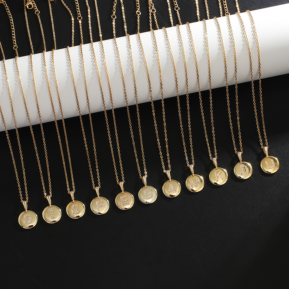 laiton collier, Plat rond, Placage de couleur d'or, unisexe & styles différents pour le choix & avec le motif de lettre & pavé de micro zircon, Longueur Environ 18 pouce, Vendu par PC