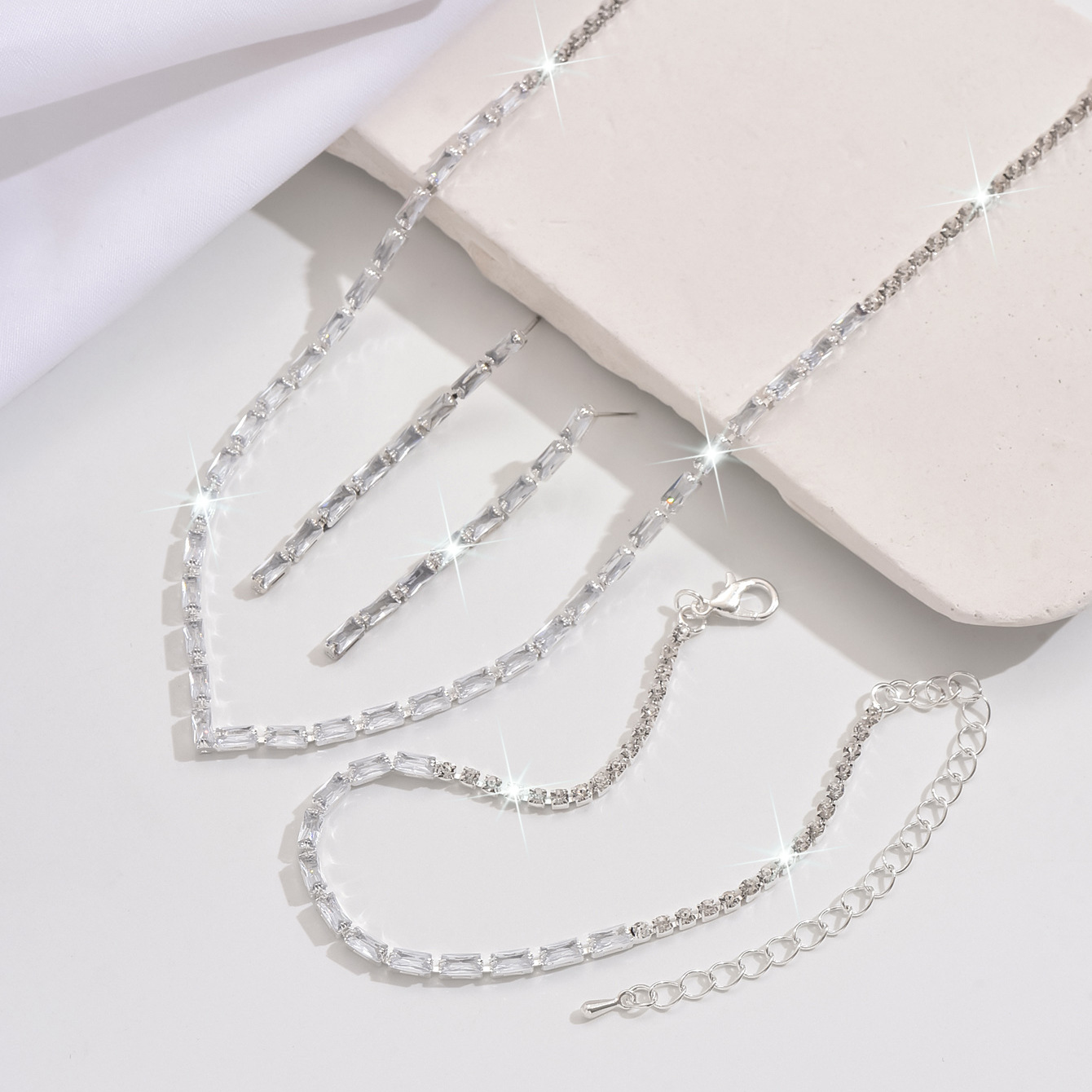 laiton parure de bijoux, Bracelet & boucle d'oreille & collier, Placage de couleur argentée, trois pièces & pavé de micro zircon & pour femme, Vendu par fixé