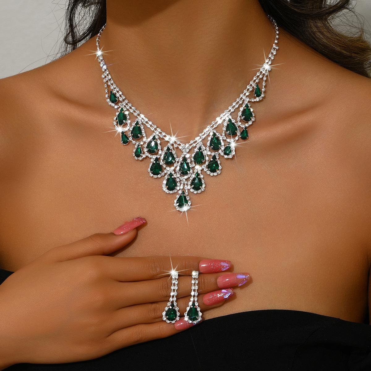 laiton parure de bijoux, boucle d'oreille & collier, larme, Placage de couleur argentée, 2 pièces & pour femme & avec strass, plus de couleurs à choisir, Vendu par fixé