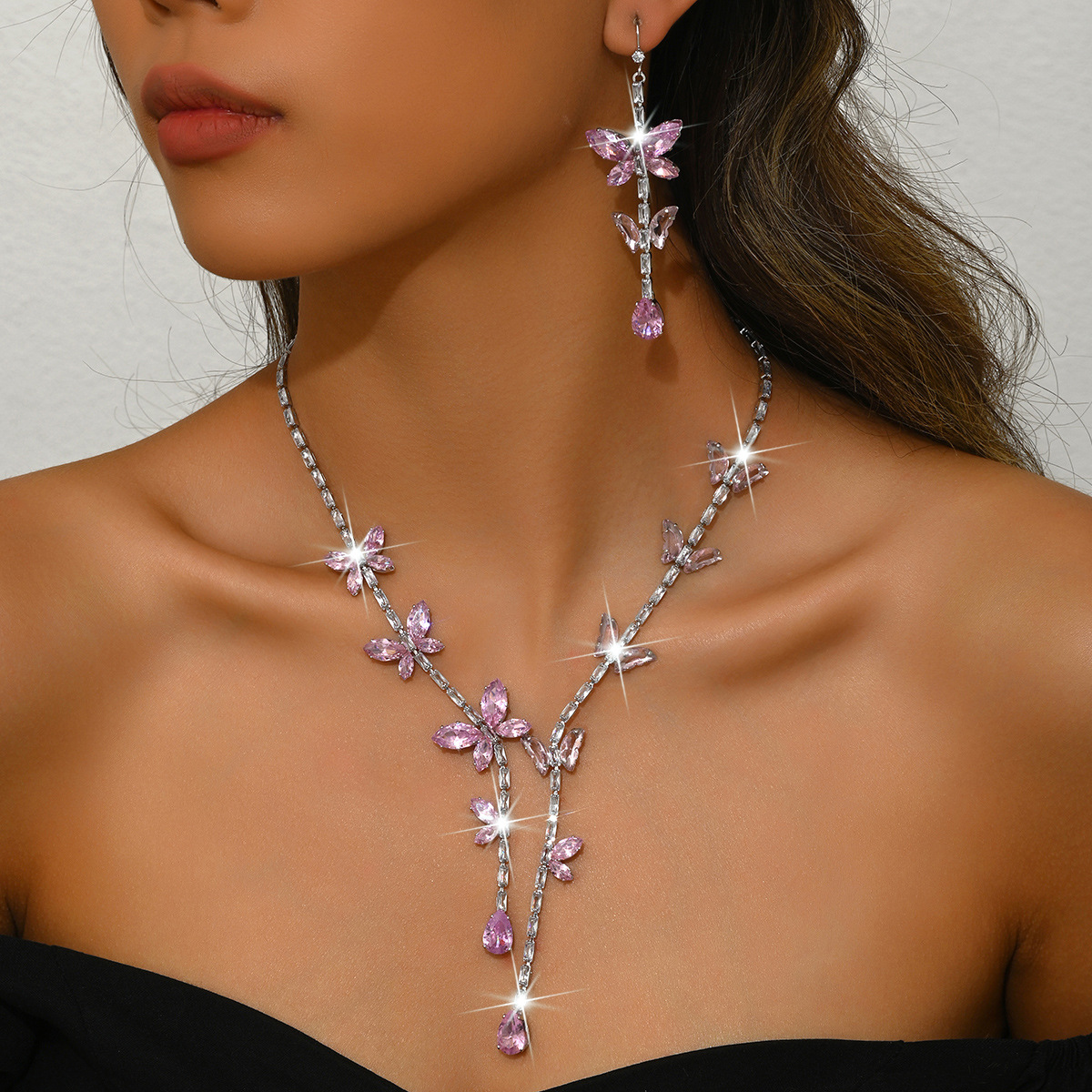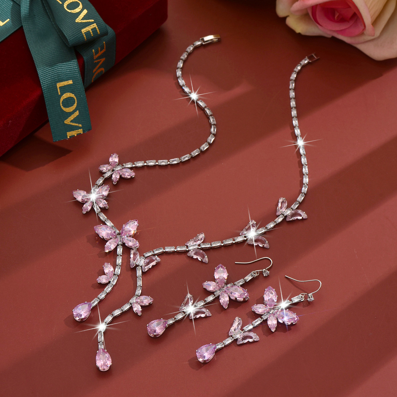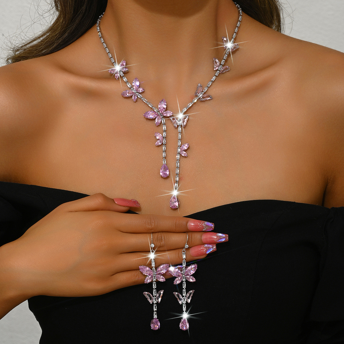 laiton parure de bijoux, boucle d'oreille & collier, papillon, Placage, pavé de micro zircon & pour femme, plus de couleurs à choisir, Vendu par fixé