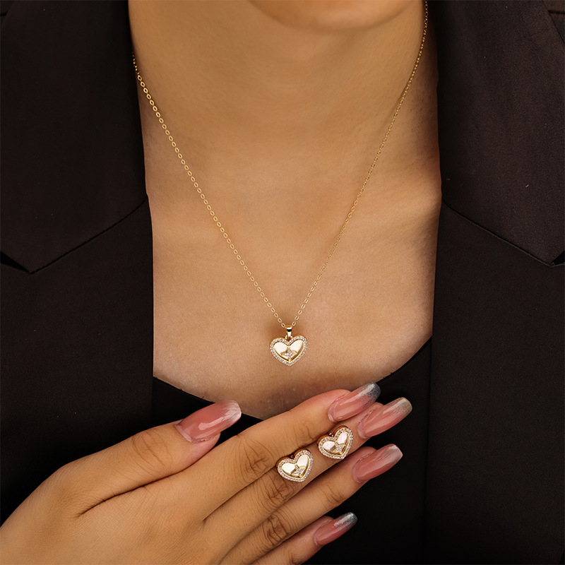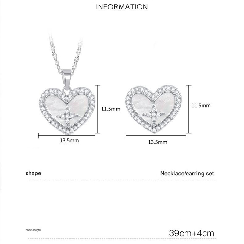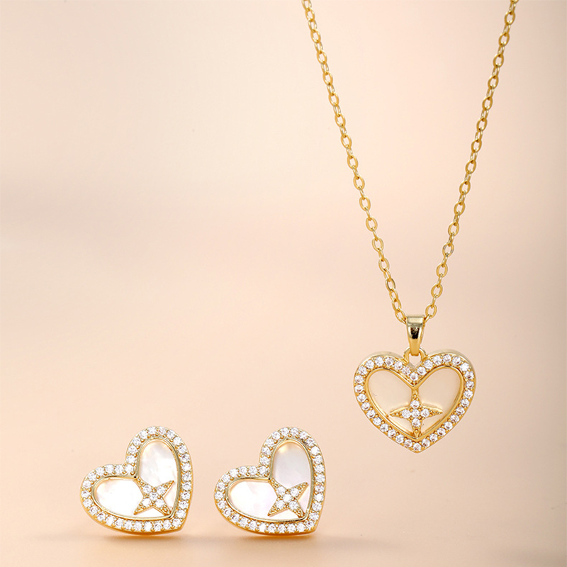 laiton parure de bijoux, avec coquille blanche, coeur, Placage, 2 pièces & pavé de micro zircon & pour femme, plus de couleurs à choisir, Vendu par fixé