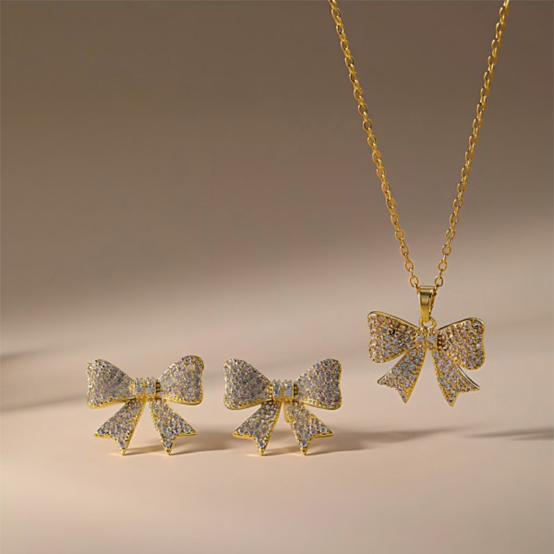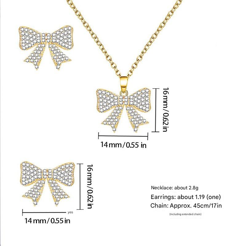 laiton parure de bijoux, Boucle d’oreille stud & collier, Noeud papillon, Placage, 2 pièces & pavé de micro zircon & pour femme, plus de couleurs à choisir, Vendu par fixé