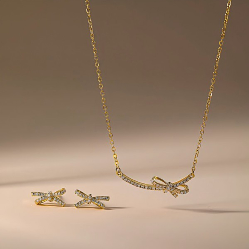 laiton parure de bijoux, Boucle d’oreille stud & collier, Noeud papillon, Placage, 2 pièces & pavé de micro zircon & pour femme, plus de couleurs à choisir, Vendu par fixé