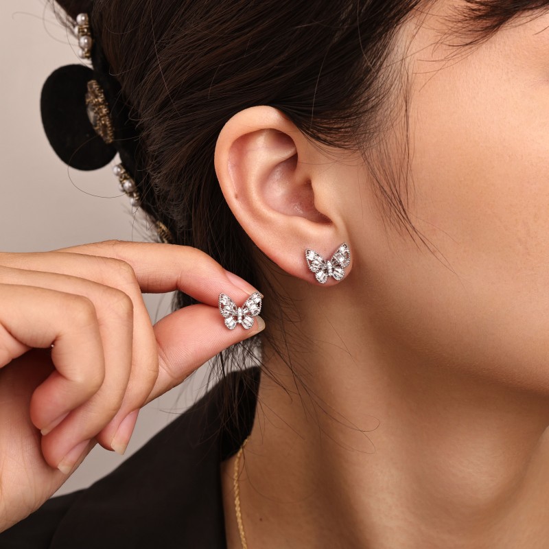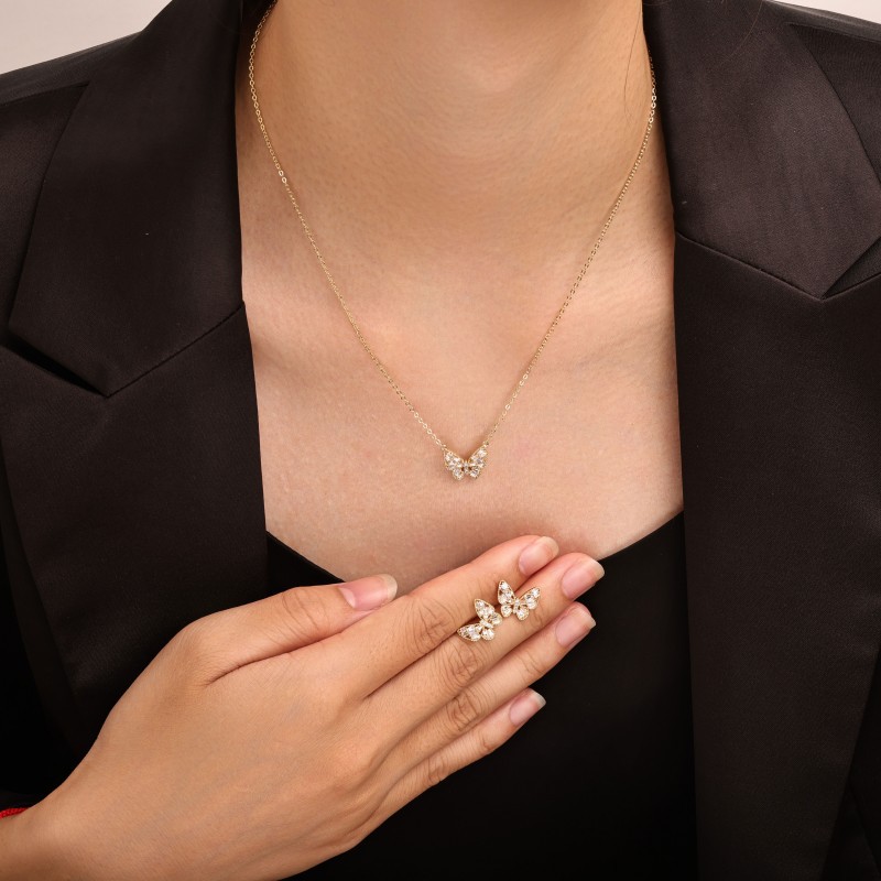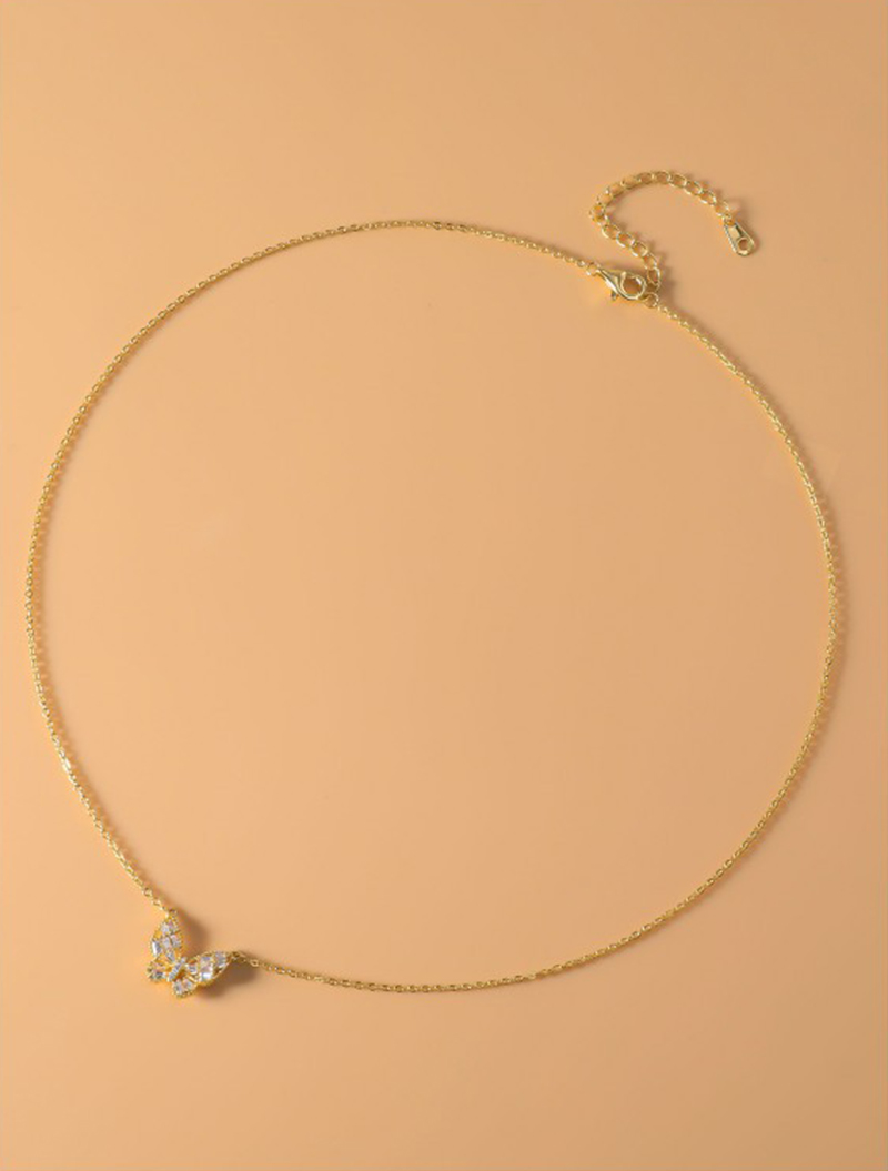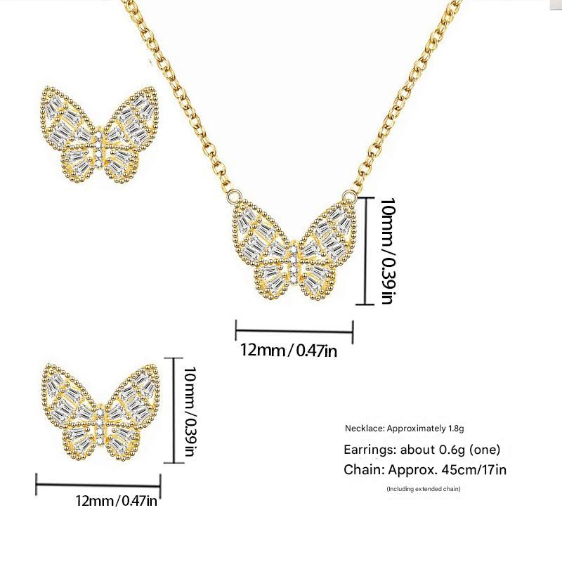 laiton parure de bijoux, Boucle d’oreille stud & collier, papillon, Placage, 2 pièces & pavé de micro zircon & pour femme, plus de couleurs à choisir, Vendu par fixé
