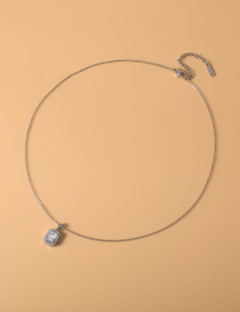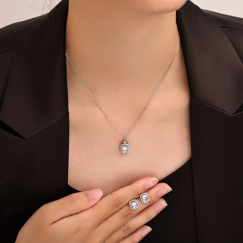 laiton parure de bijoux, Boucle d’oreille stud & collier, Motif géométrique, Placage, 2 pièces & pavé de micro zircon & pour femme, argent, Vendu par fixé