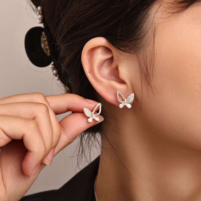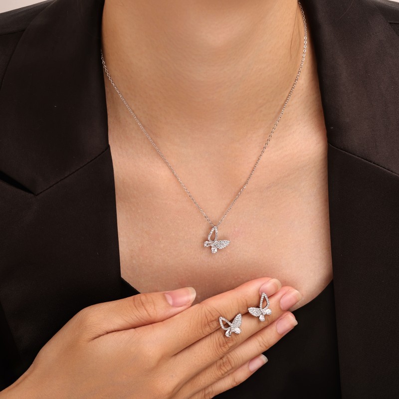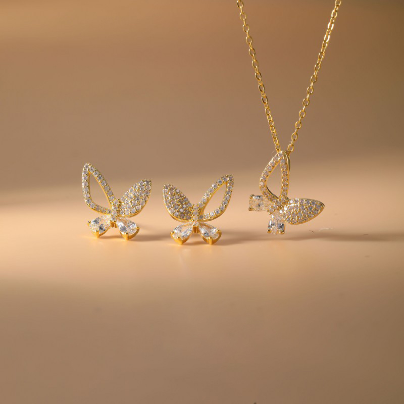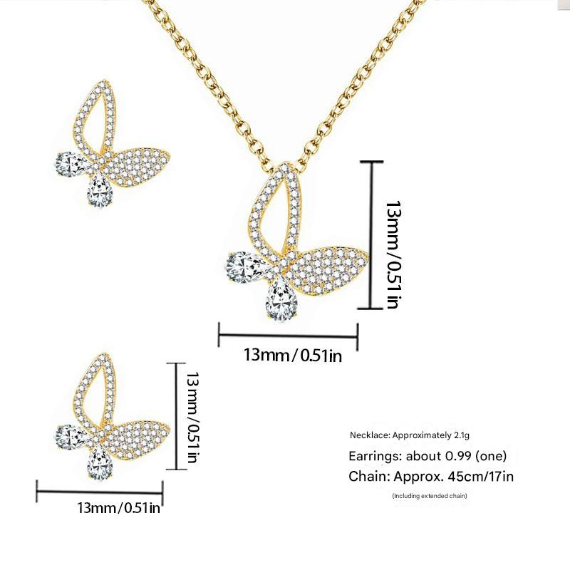 laiton parure de bijoux, Boucle d’oreille stud & collier, papillon, Placage, 2 pièces & pavé de micro zircon & pour femme & creux, plus de couleurs à choisir, Vendu par fixé
