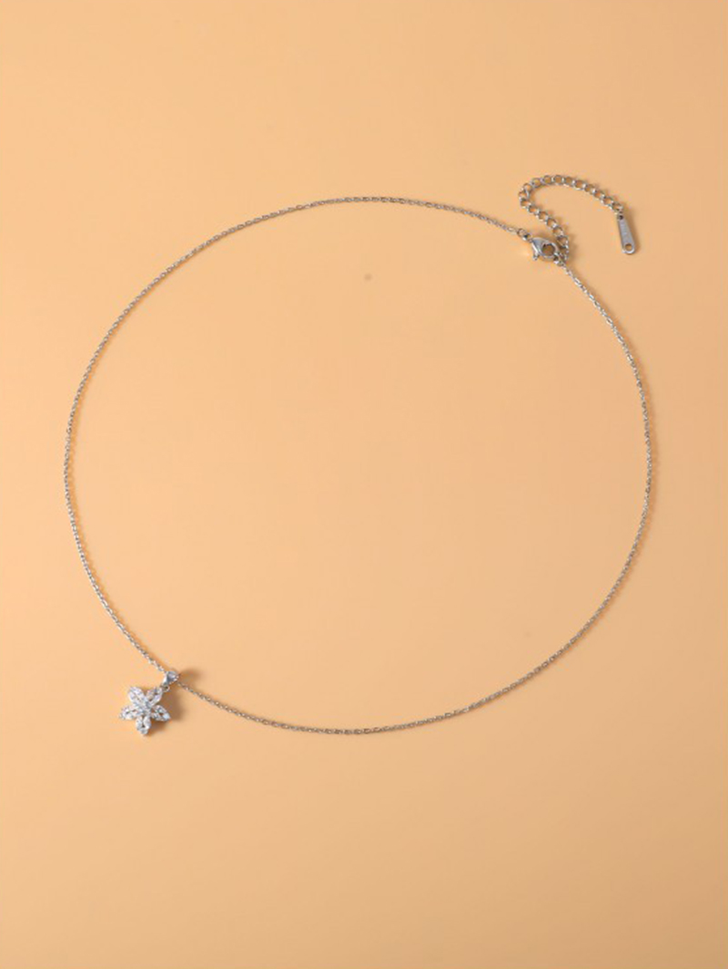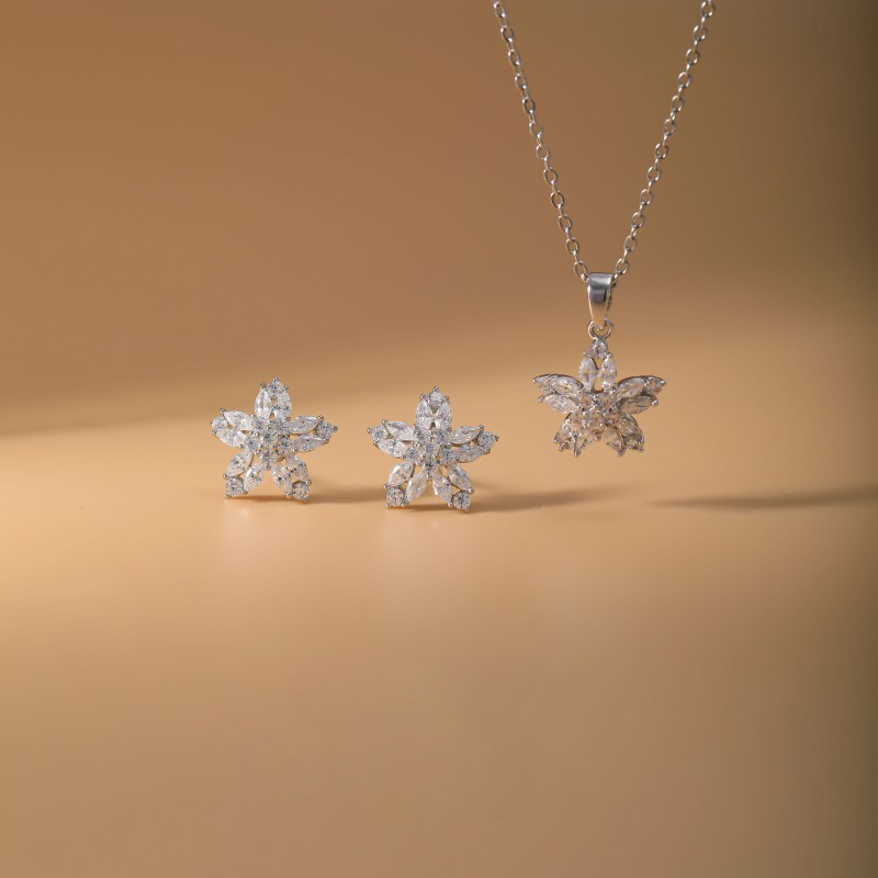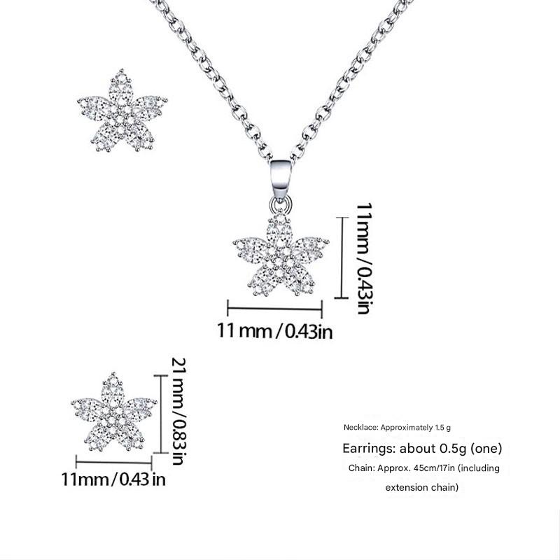 laiton parure de bijoux, Boucle d’oreille stud & collier, fleur, Placage, 2 pièces & pavé de micro zircon & pour femme, argent, Vendu par fixé