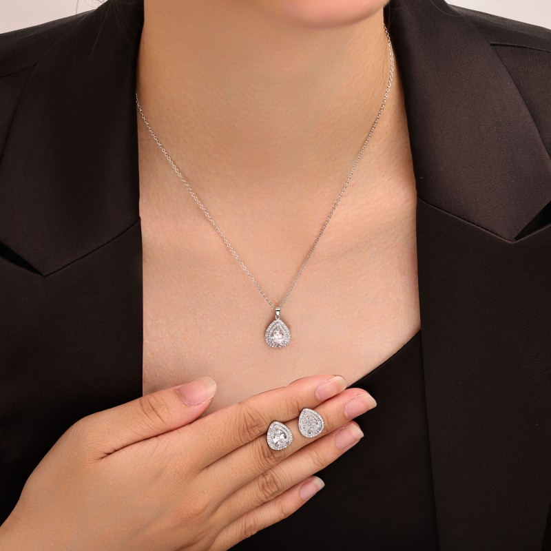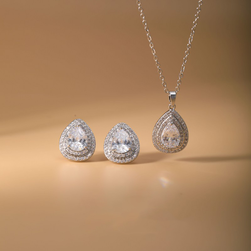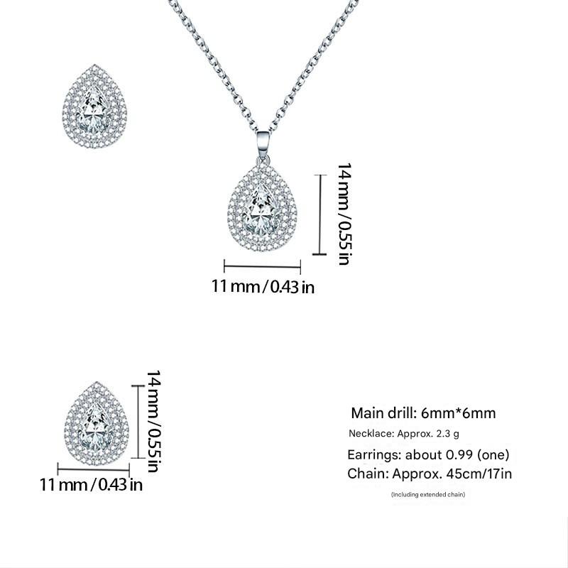 laiton parure de bijoux, Boucle d’oreille stud & collier, larme, Placage, 2 pièces & pavé de micro zircon & pour femme, argent, Vendu par fixé