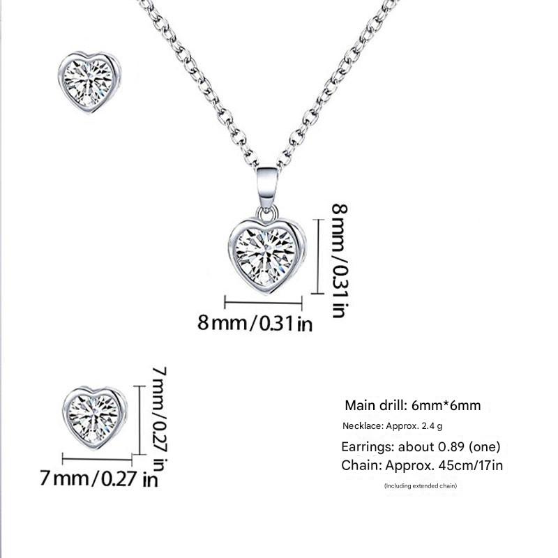 laiton parure de bijoux, Boucle d’oreille stud & collier, coeur, Placage, 2 pièces & pavé de micro zircon & pour femme, argent, Vendu par fixé