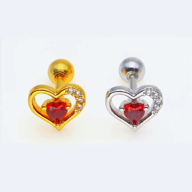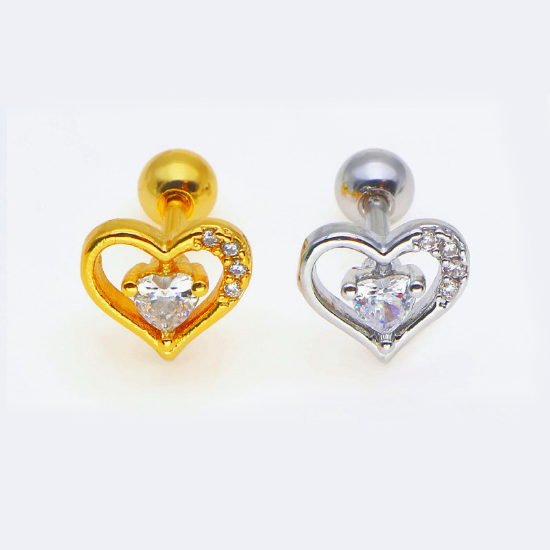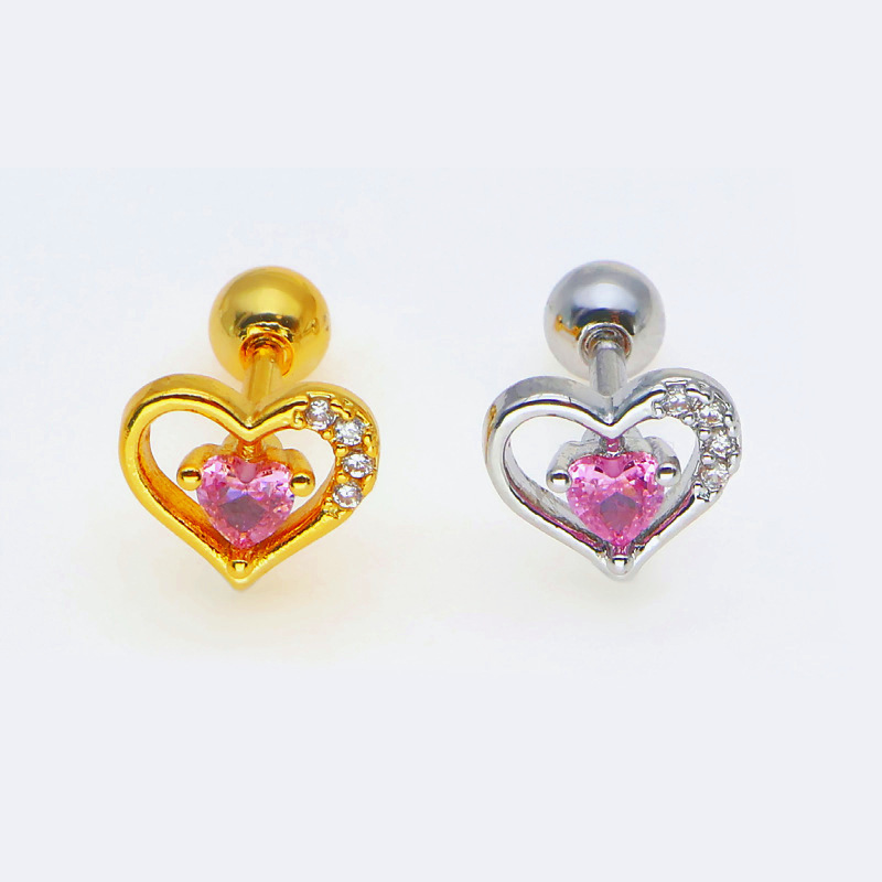 laiton piercing oreille, coeur, Placage, unisexe & styles différents pour le choix & pavé de micro zircon, earring rod size 6mm, Vendu par PC