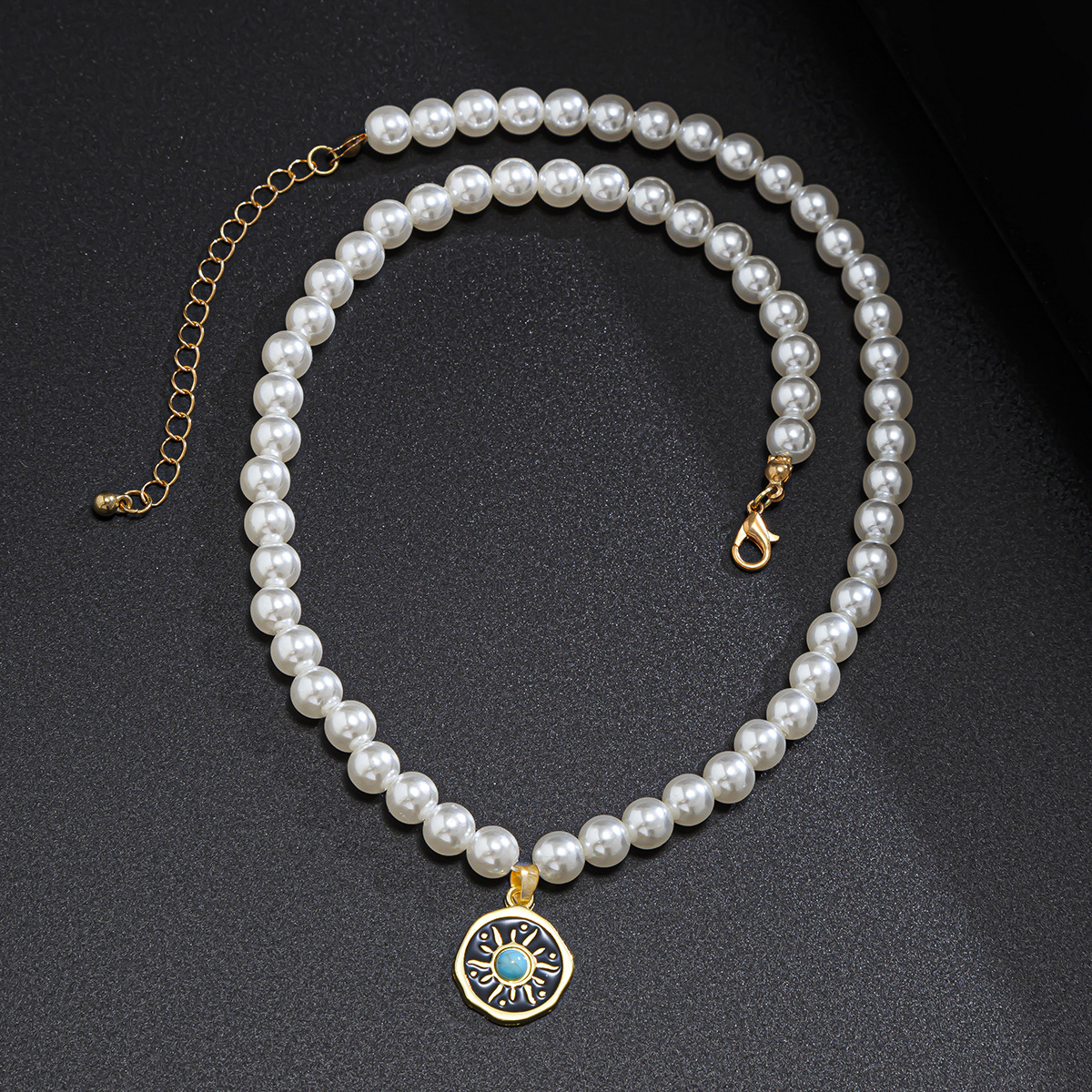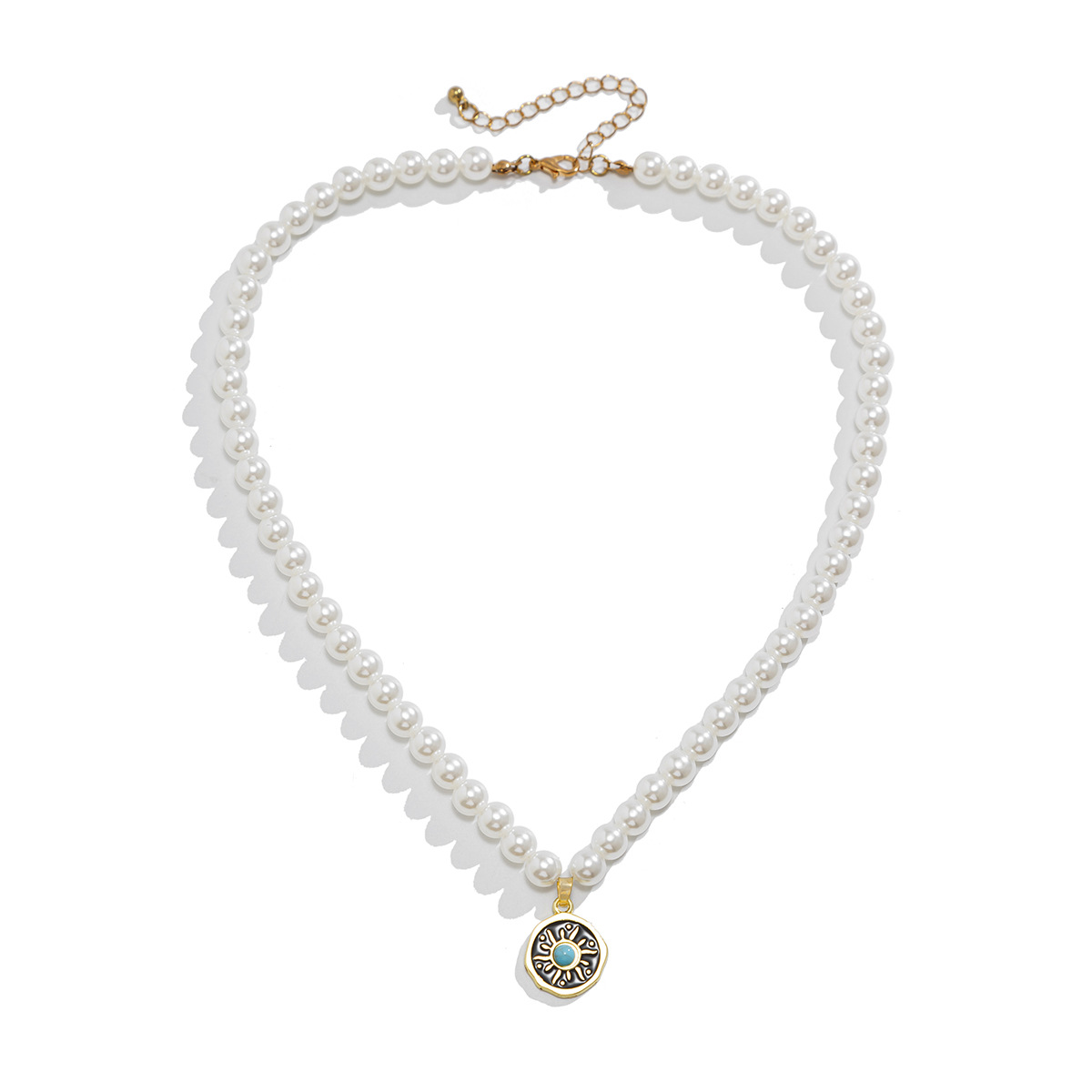 perle de plastique collier, avec alliage de zinc, avec 2.7inch chaînes de rallonge, Plat rond, Placage de couleur d'or, pour homme & émail, Longueur Environ 18.5 pouce, Vendu par PC