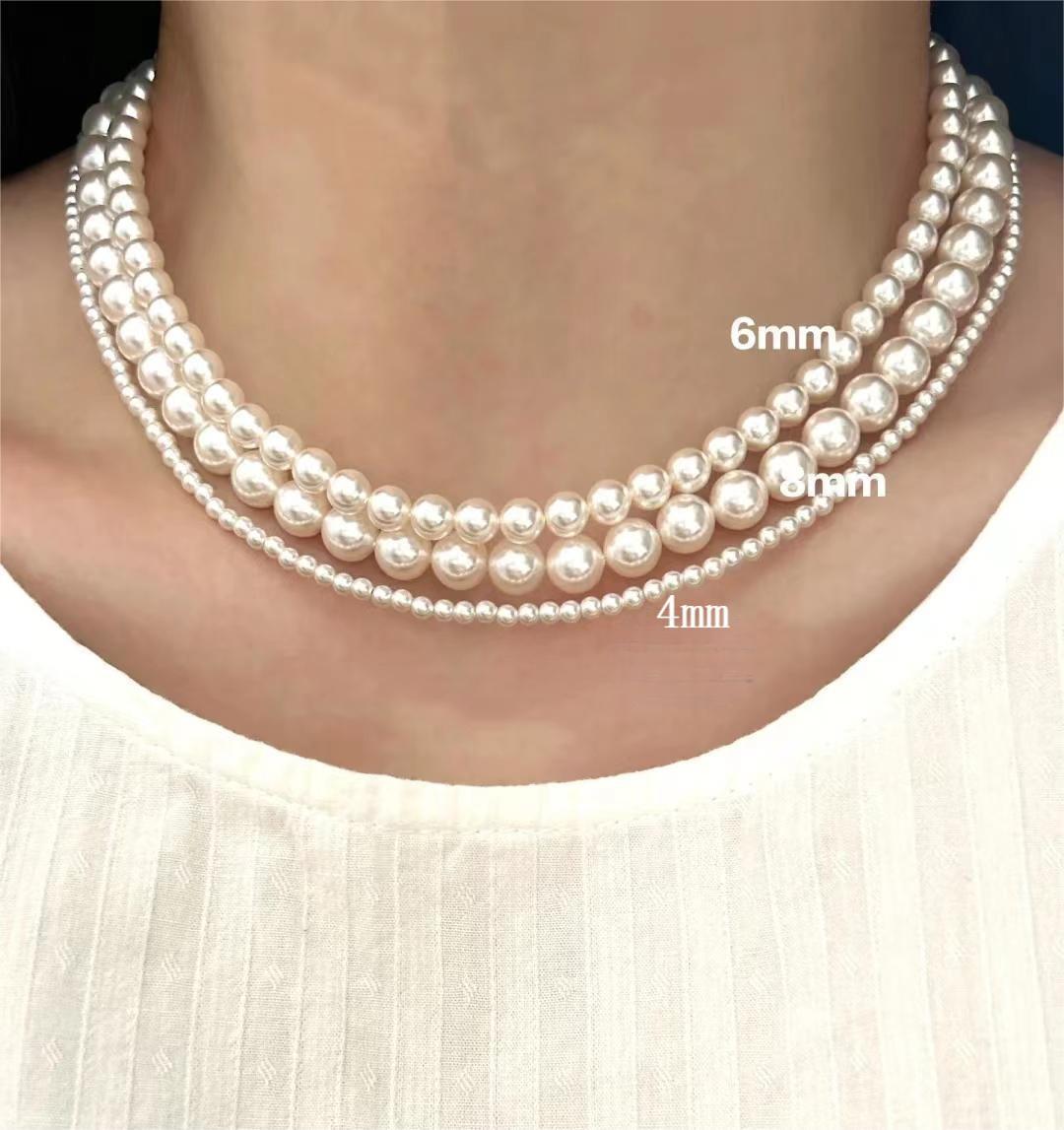 1:4mm white pearl necklace2:6mm white pearl necklace3:8mm white pearl necklace4:10mm white pearl necklace5:12mm white pearl necklace6:4mm gray pearl necklace7:6mm gray pearl necklace8:8mm gray pearl necklace9:10mm gray pearl necklace10:3mm white pearl necklace