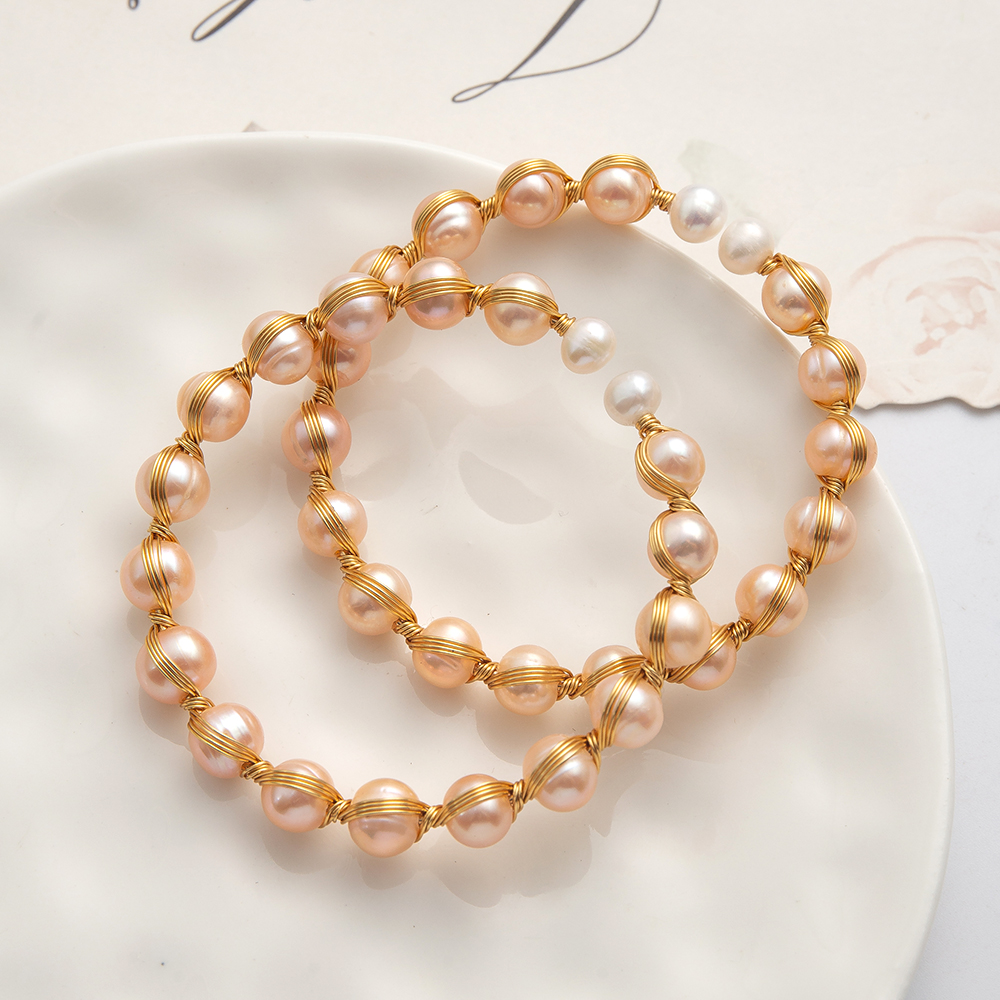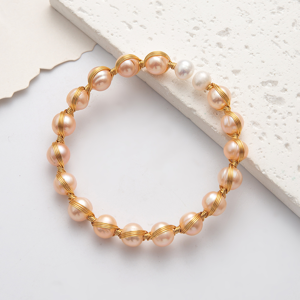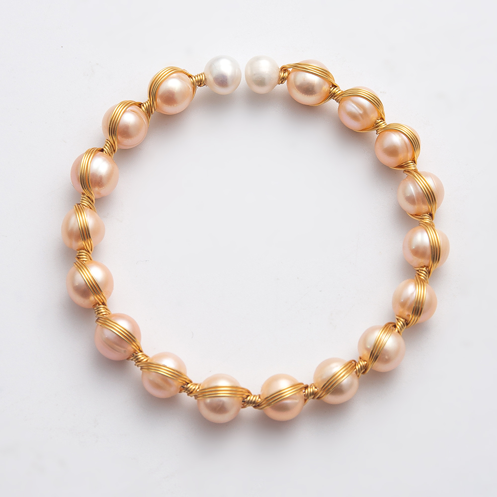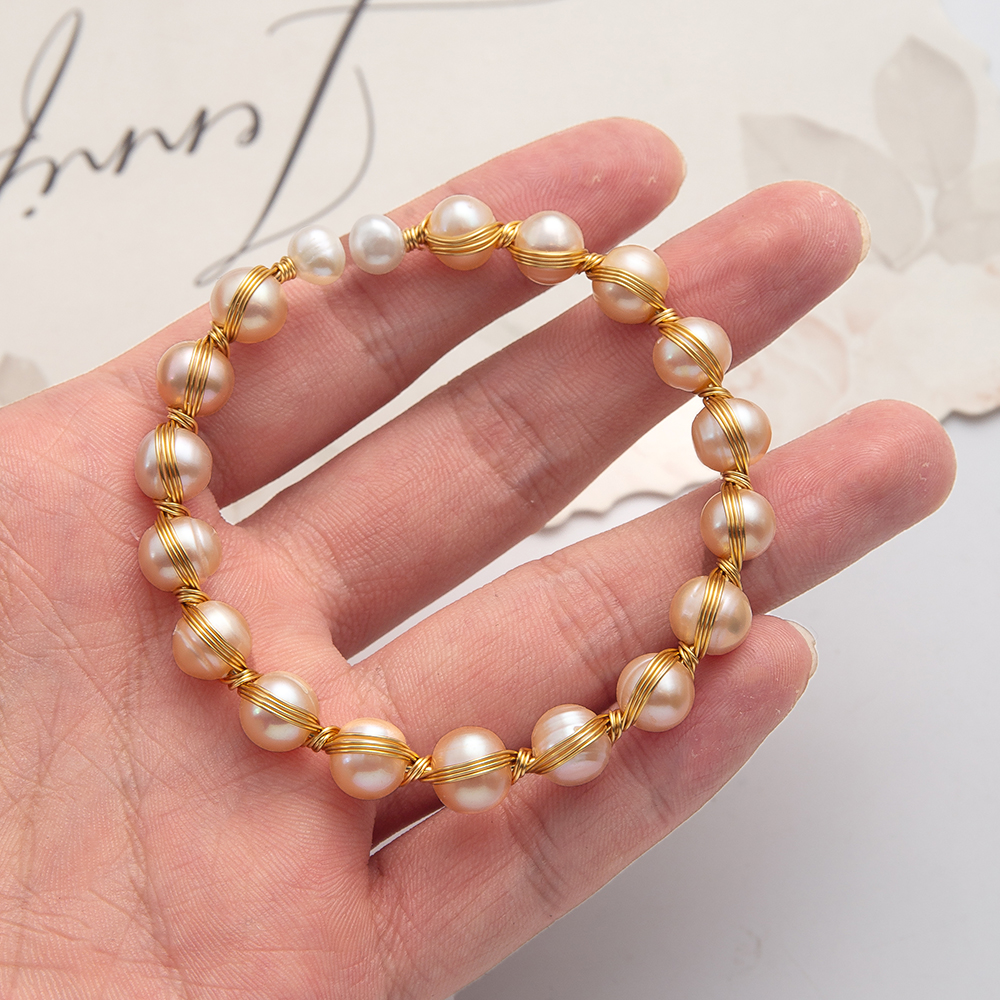 perle d'eau douce cultivée bracelet manchette, avec Alliage, Rond, Placage de couleur d'or, bijoux de mode, rose, Diamètre intérieur:Environ 60mm, Vendu par PC