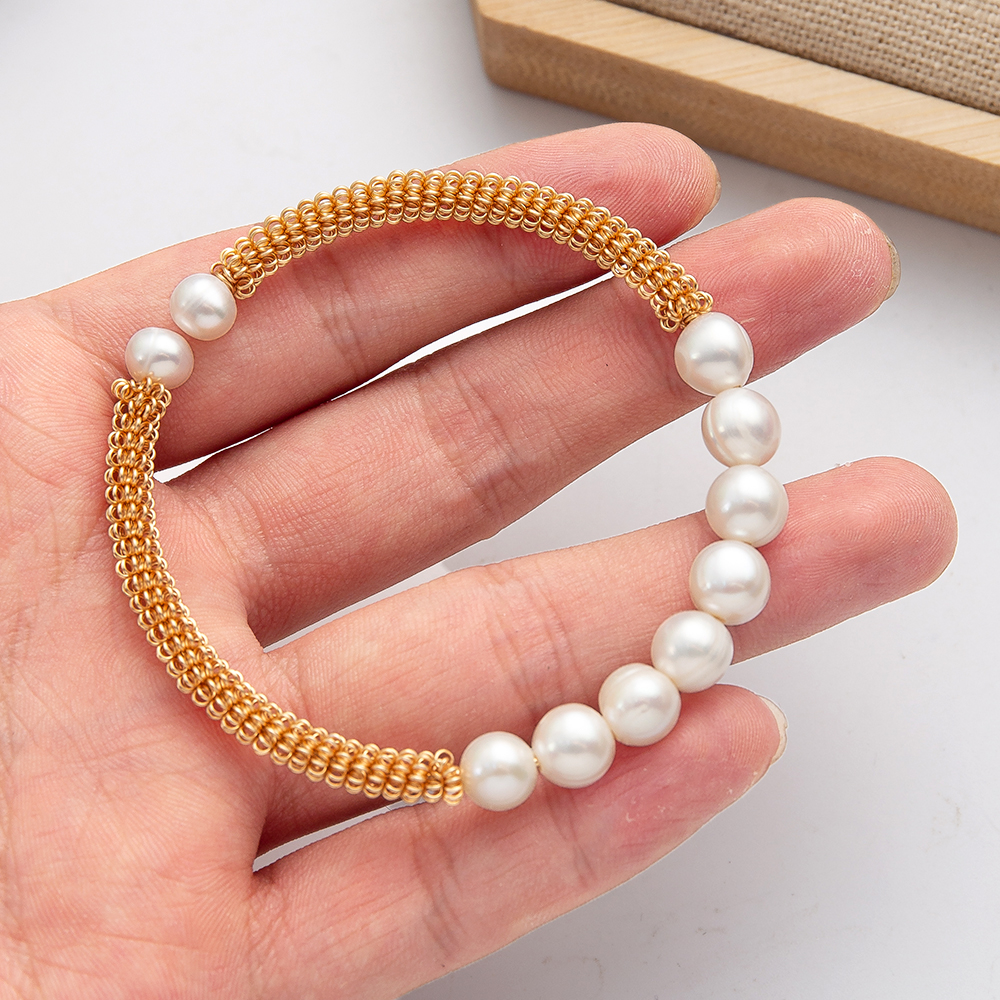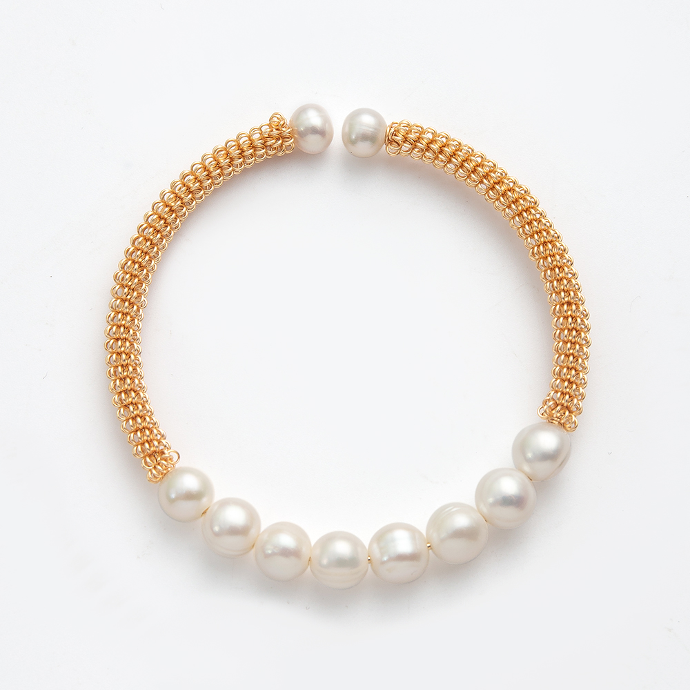 perle d'eau douce cultivée bracelet manchette, avec Alliage, Rond, Placage de couleur d'or, bijoux de mode, blanc, Diamètre intérieur:Environ 60mm, Vendu par PC