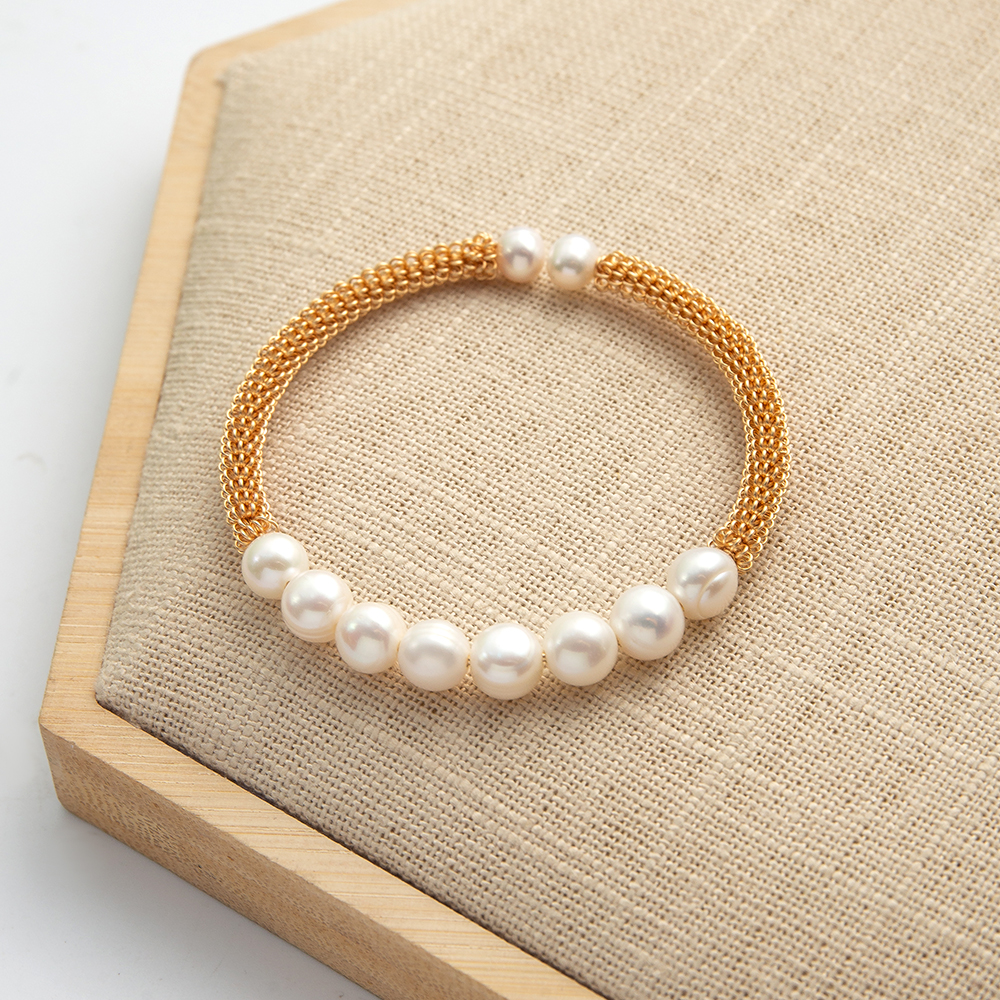 Bracelet en perles de culture d'eau douce, perle d'eau douce cultivée, avec laiton, Baroque, Placage, bijoux de mode, plus de couleurs à choisir, 6x7mm, Vendu par brin