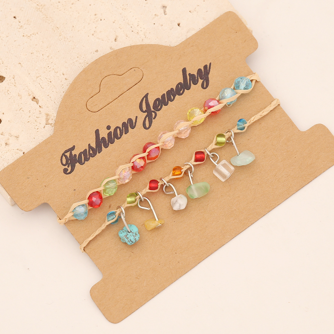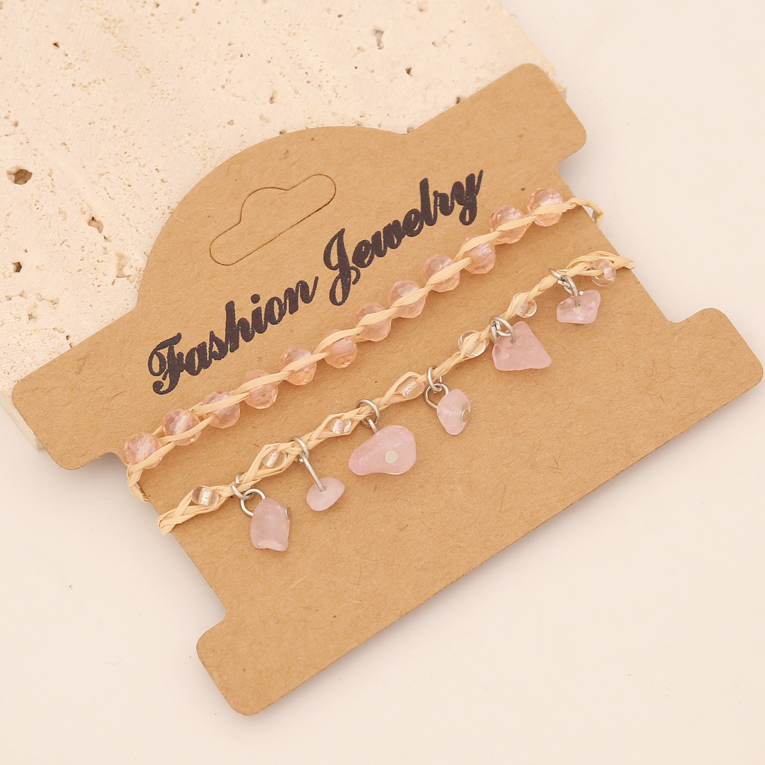 pierre gemme Set de bracelet, avec Paille & alliage de zinc, avec 2inch chaînes de rallonge, fait à la main, différents matériaux pour le choix & pour femme, Longueur Environ 7 pouce, Vendu par fixé