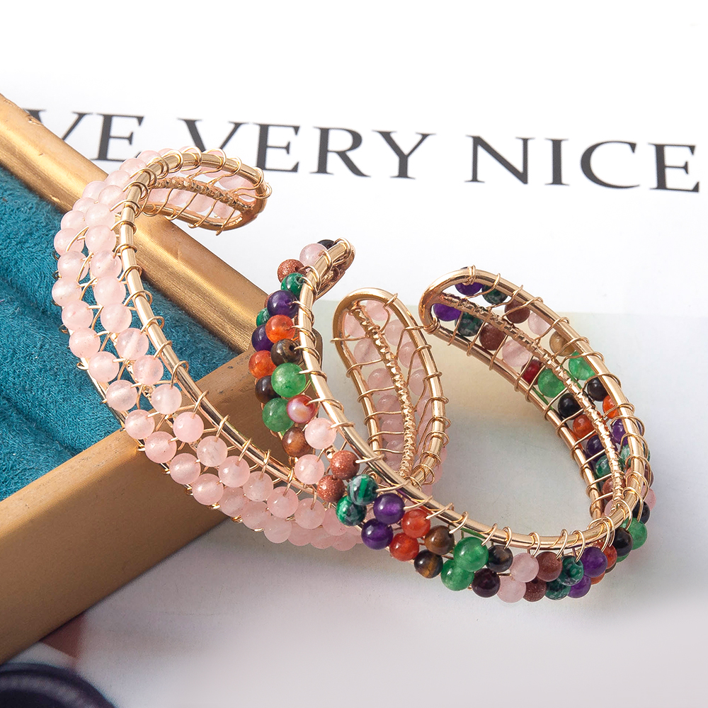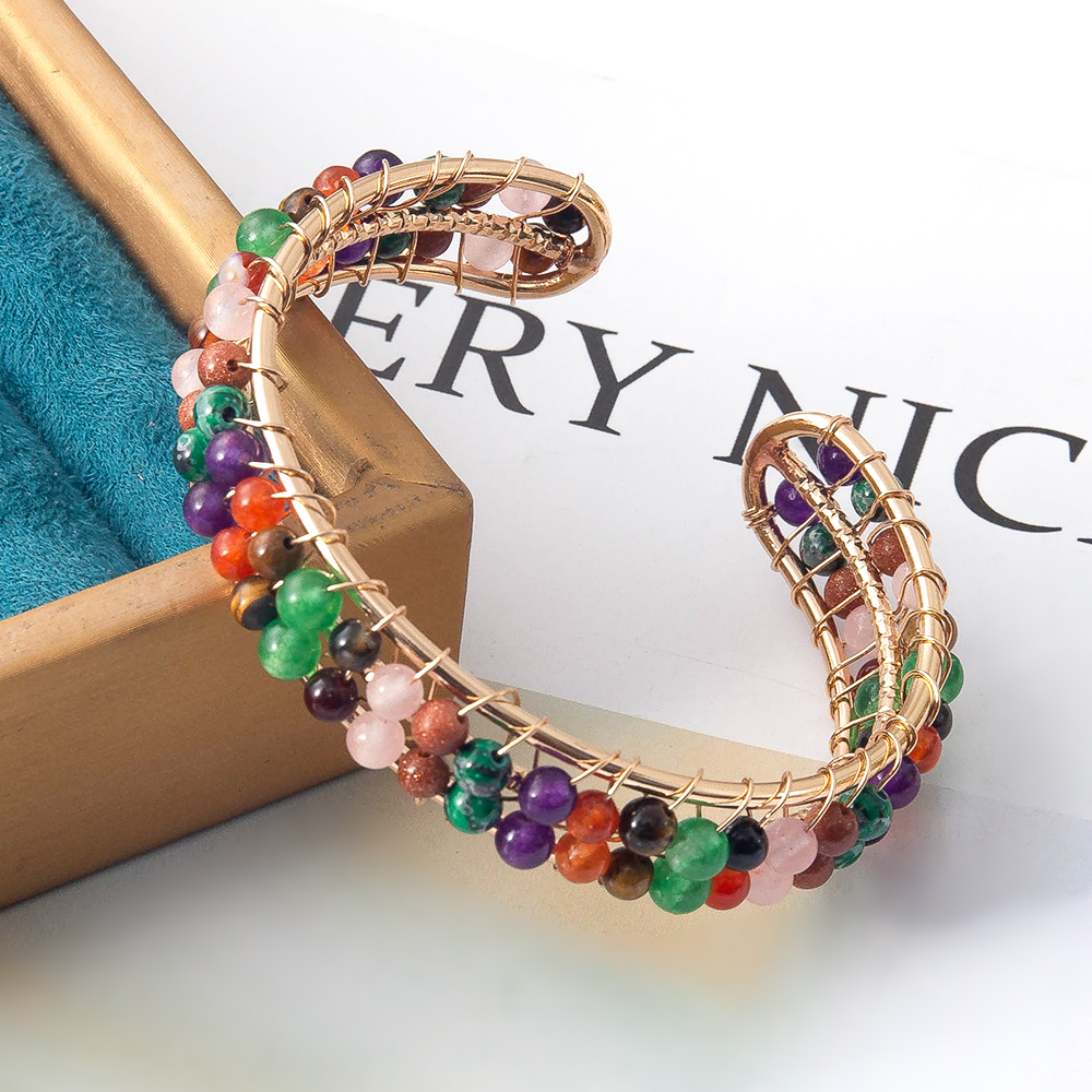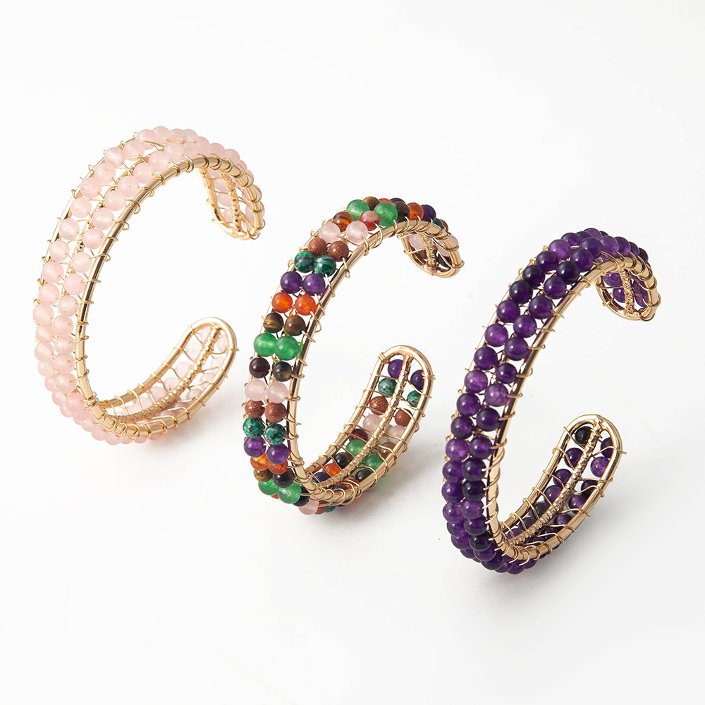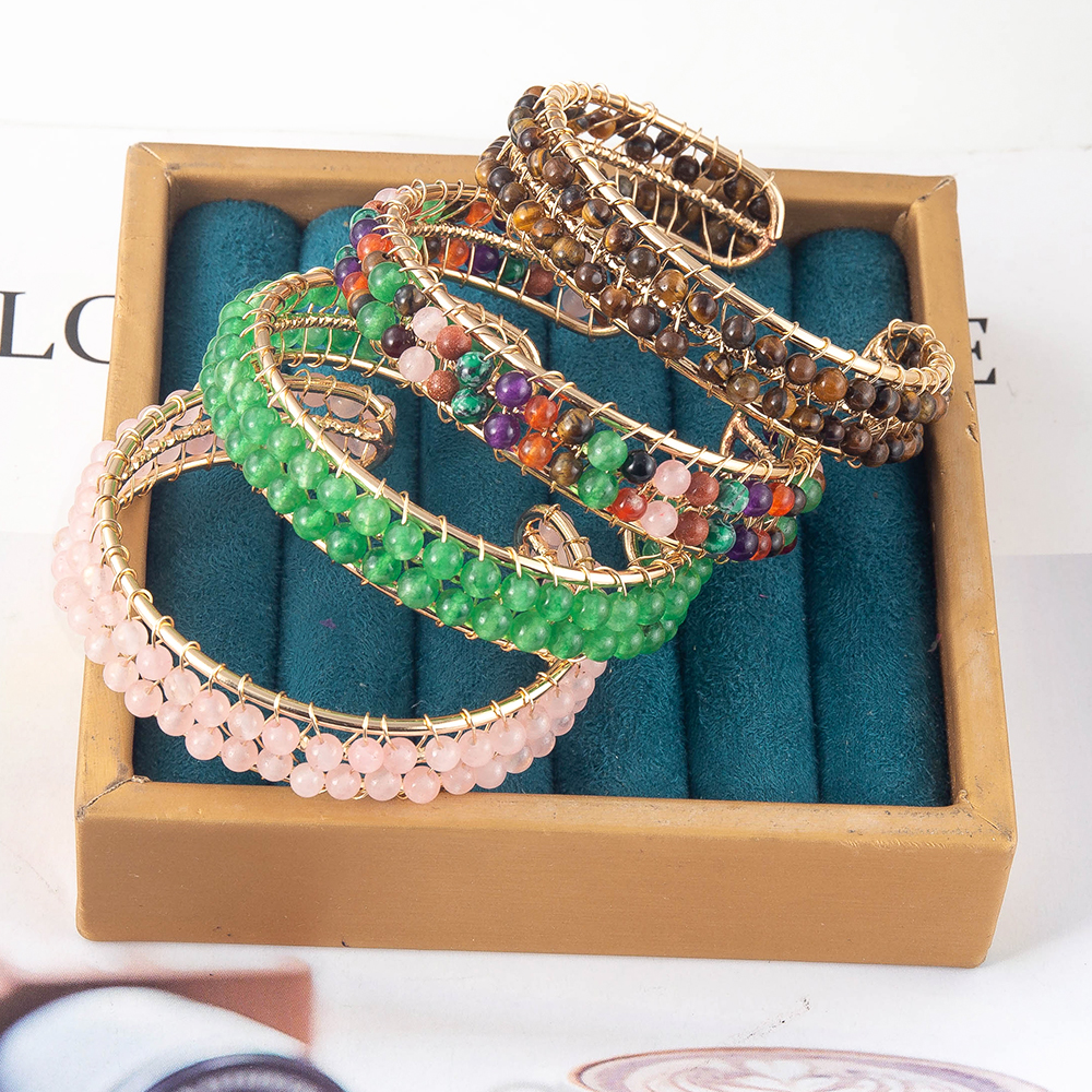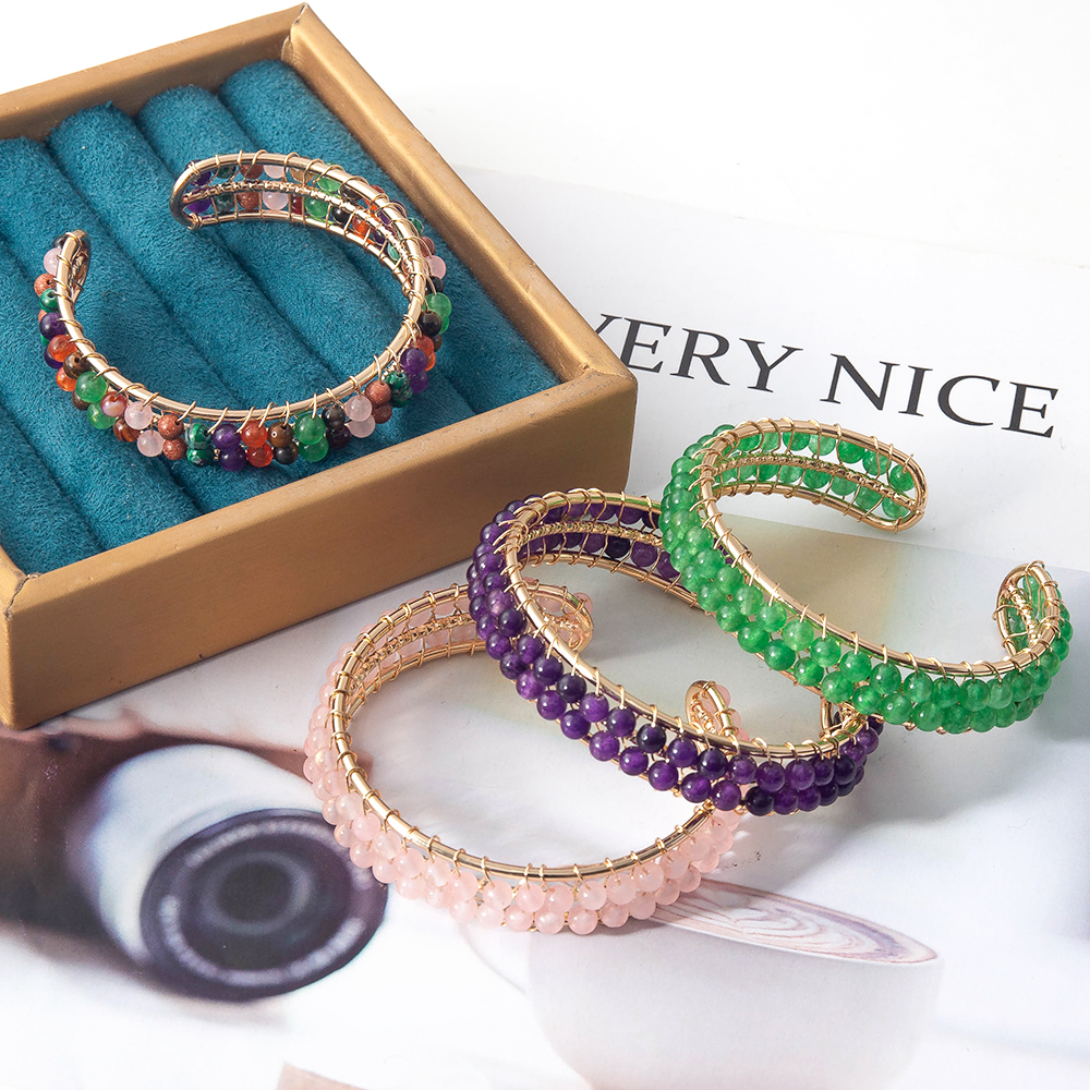 pierre gemme bracelet manchette, avec laiton, Placage, bijoux de mode, plus de couleurs à choisir, 53.37x15.50x65.35mm, Longueur 38 cm, Vendu par PC